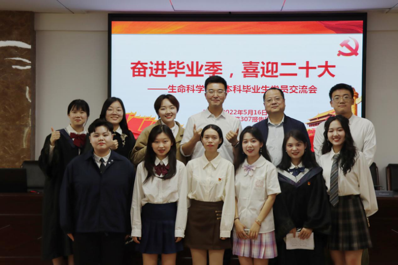 (通讯员 阳锦华 黄志娴 洪迪珊)5月16日,生命科学学院本科生党支部于生科院三号楼B307学术报告厅开展主题为“奋进毕业季、喜迎二十大”的毕业生党员交流会。院党委副书记彭赛丰、本科生党支部书记王洋出席此次交流会,支部委员阳锦华担任会议主持人。