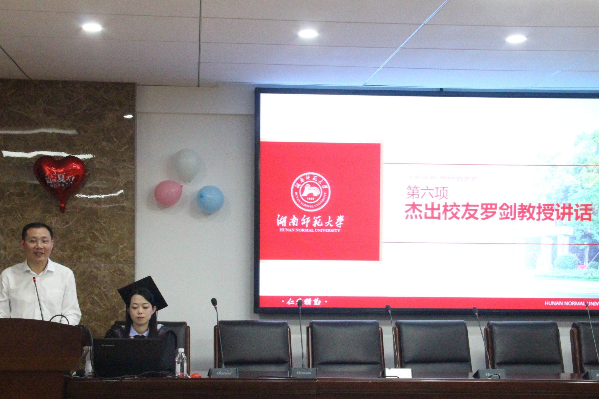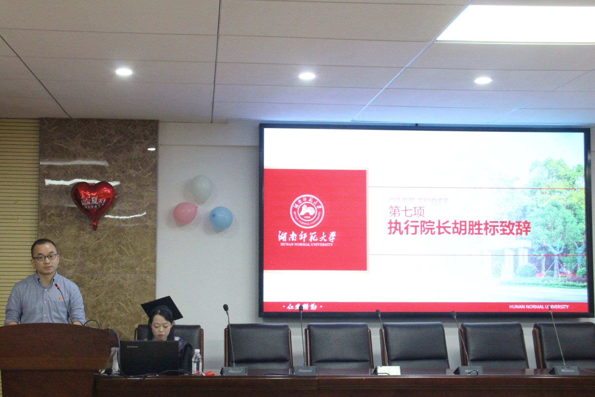 (通讯员 吴静 孙卓 邓芝涵)6月18日上午,生命科学学院于生科院B栋307学术报告厅举办2024届本科生毕业仪式。学院党委书记谢罗庚、学院执行院长胡胜标、湖南省生物所所长覃钦博、学院正处级组织专员蒋能胜、学院副院长陈湘定、学院党委副书记彭赛丰、学院副院长李云龙、湖南省生物所副所长王素娥、省部共建淡水鱼类发育生物学国家重点实验室专职副主任赵霆雷、动物多肽药物创制国家地方联合工程实验室专职副主任丁金花、98级杰出校友罗剑、教师代表徐孟亮以及各班班导师、专任教师、各行政办公室老师们出席此次仪式。生科院2020级辅导员罗静伟担任此次仪式主持人。