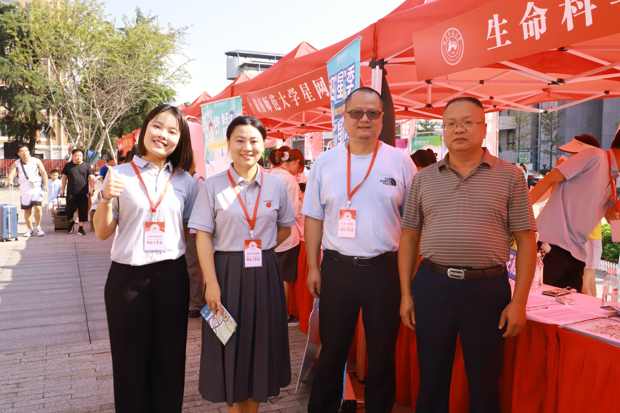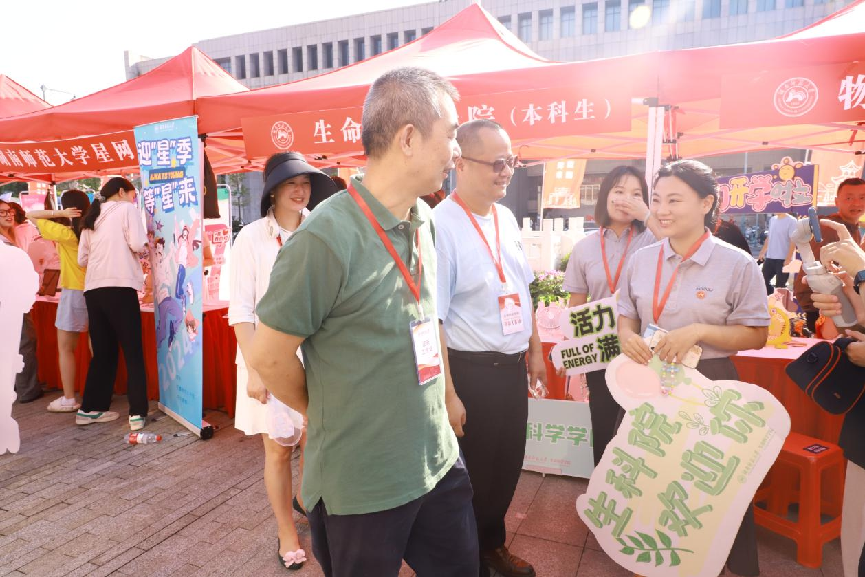 (通讯员 蒋梦瑶)9月8日上午,生命科学学院党委书记谢罗庚、党委副书记彭赛丰、24级辅导员罗静伟和23级辅导员吴晴前往湖南师范大学五舍广场报道点视察学院迎新工作开展情况。