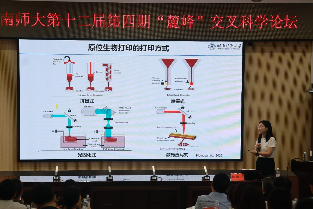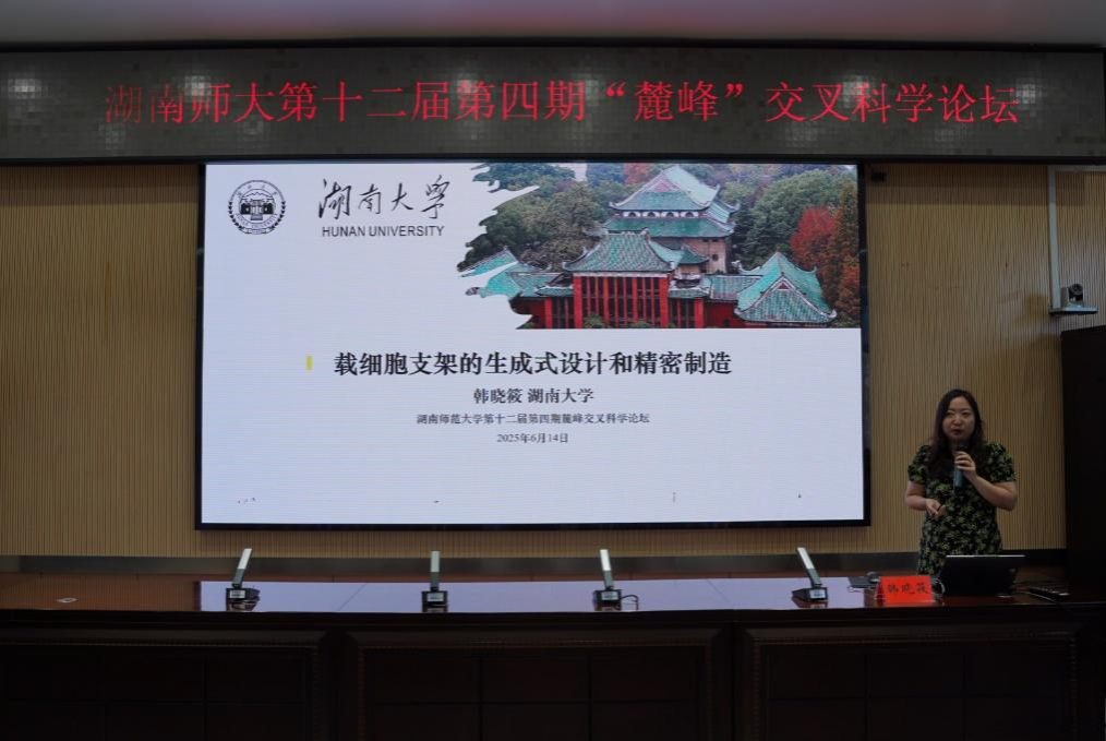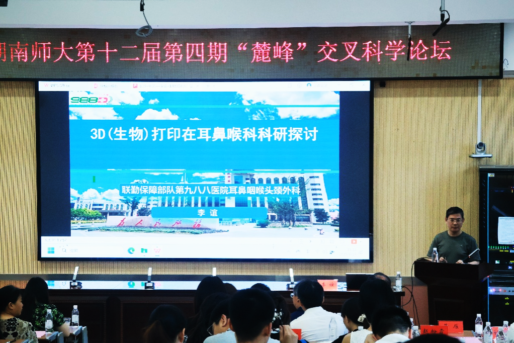 6月14日,湖南师范大学第十二届第四期“麓峰”交叉科学论坛在生命科学学院举办,本期论坛的主题为:类器官与生物3D打印。受邀出席的报告嘉宾有清华大学徐弢教授、湖南大学韩晓筱教授、解放军联勤保障部队第988医院李谊主任医师、生命科学学院陈海燕副教授。论坛由交叉科学研究院副院长艾建平、生命科学学院刘中华教授、王颖教授和周熙副教授共同主持。生命科学学院副院长杨焕胜教授致欢迎辞。
