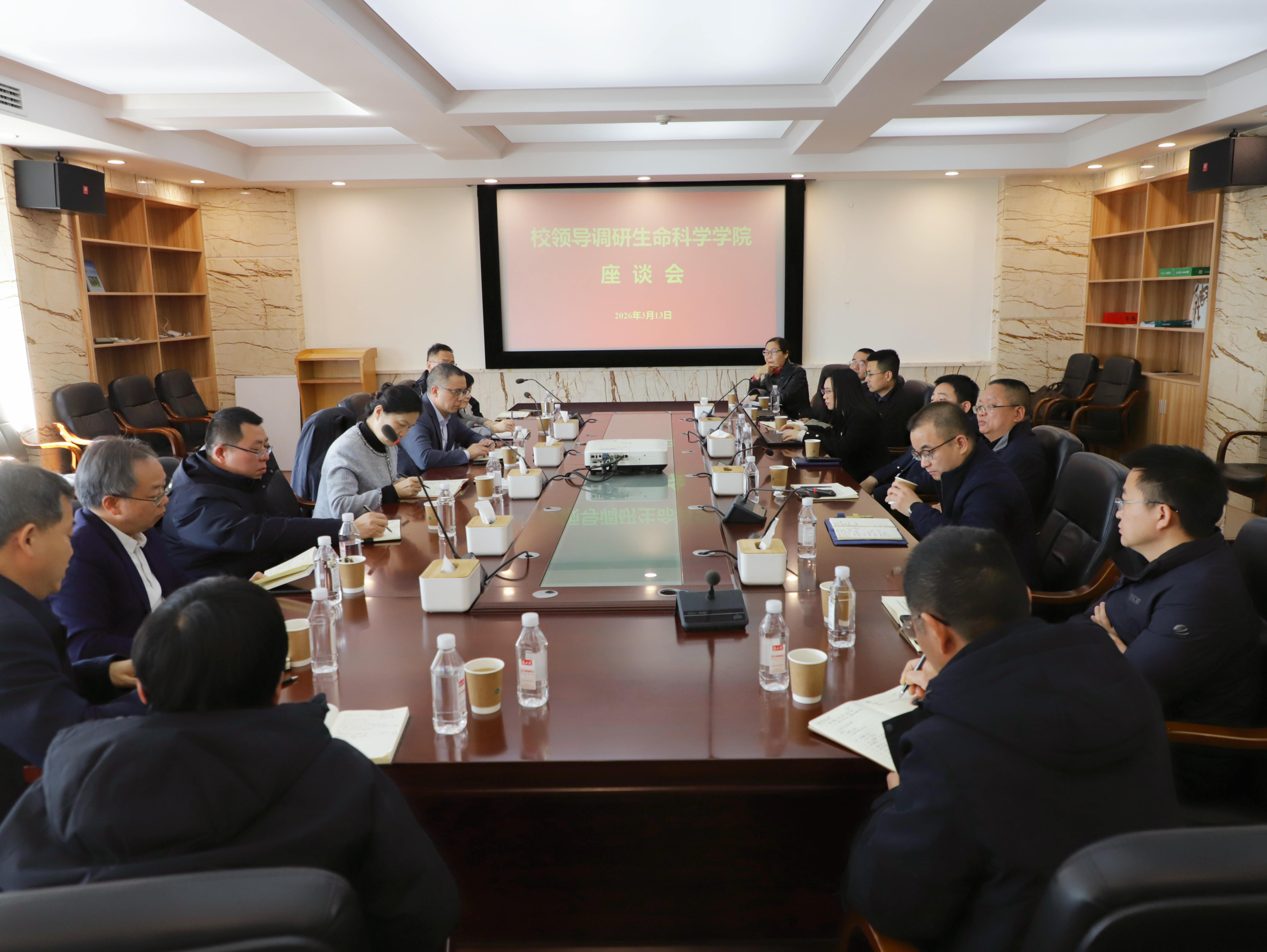 (通讯员 王佳佳)3月13日上午,学校党委副书记段巍,副校长刘红荣一行到生命科学学院调研并召开座谈会,生命科学学院党委书记谢罗庚主持座谈会。