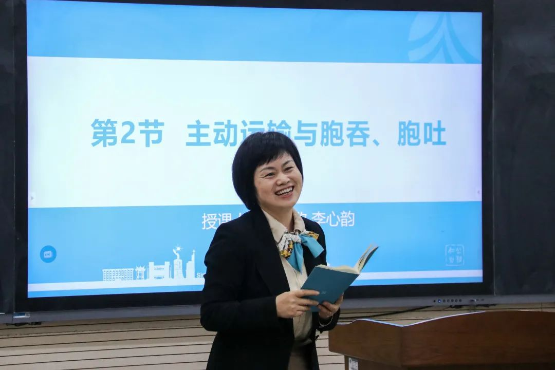 李心韵以“囊性纤维化”的病症为例,从阐述患病的机制、到与学生共同探究治疗方案,用一条线将物质跨膜运输方式串联起来,真正做到了将知识渗透到了课堂的每一个角落。