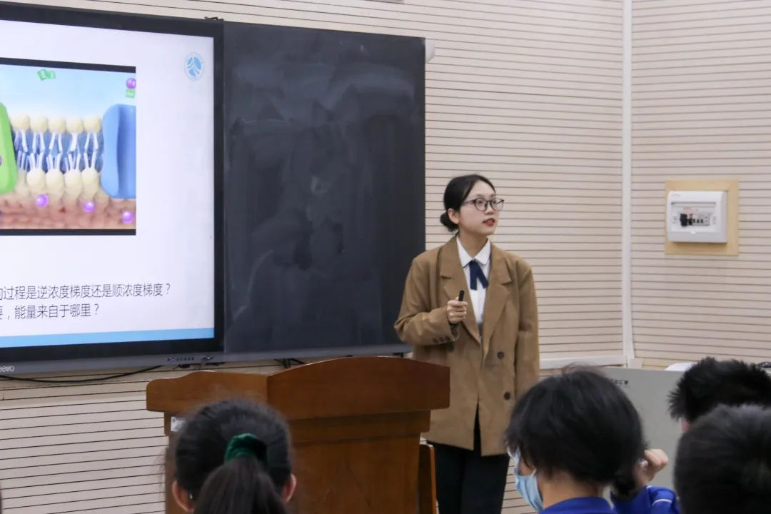 11月3日,实习老师何文欣、李心韵主讲的汇报课《主动运输与胞吞、胞吐》于师大附中惟一楼一楼东第一多功能厅顺利开展。为深入了解师范生实习情况,湖南师范大学组织专项工作组赴师大附中关心慰问实习老师,并联合师大附中教研组对实习队各项工作进行了检查。湖南师大生科院党委书记谢罗庚、教学副院长陈湘定、生科院专任教师戴国、外国语学院副院长刘白、历史文化学院副院长徐良利、美术学院党委副书记莫南、教师教育学院教管科科长谢燕、候会丽老师、师大附中科技创新中心副主任黄俊、教学指导委员会主任汪训贤、学术委员会委员李尚斌、生物教研组组长杨群英、副组长朱昌明莅临现场指导,附中生物组教师及全体实习老师参与。