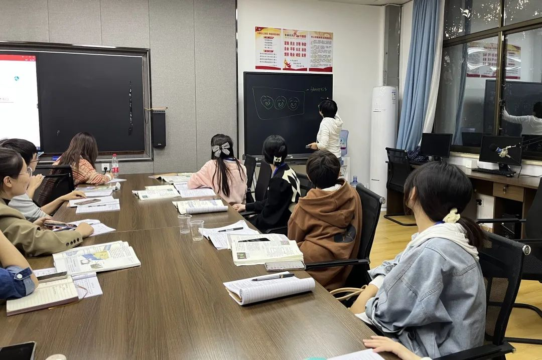 实习老师李心韵和何文欣分别展示教学设计,一位重情境,一位重基础,各有特色也各有缺陷。老师们经商议,决定给予实习队充分的信任和展示锻炼机会,汇报课采取“同课异构”模式。由于时间紧迫,为提高效率,指导老师和实习老师分为两大组,同步推进备课评课工作。