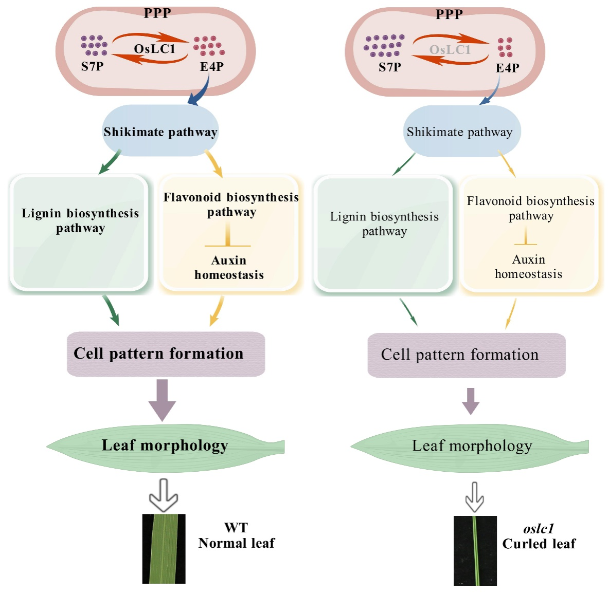 Plant Biotechnology Journal |湖南师大田连福博士课题组揭示水稻叶片发育调控新机制:转醛醇酶OsLC1通过次生代谢调控细胞发育模式和叶片形态建成