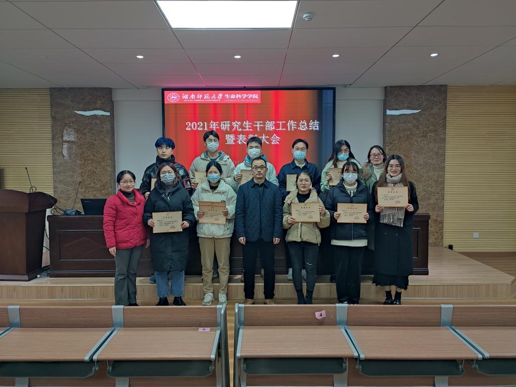 2021年12月31日下午,2021年生命科学学院研究生干部工作总结大会暨表彰大会在学院三号楼307报告厅举行。学院研究生共30余名研究生干部参加了会议。会议由学院研究生副院长胡胜标主讲,研究生办黄畅老师主持,章燕老师参加了本次会议。
