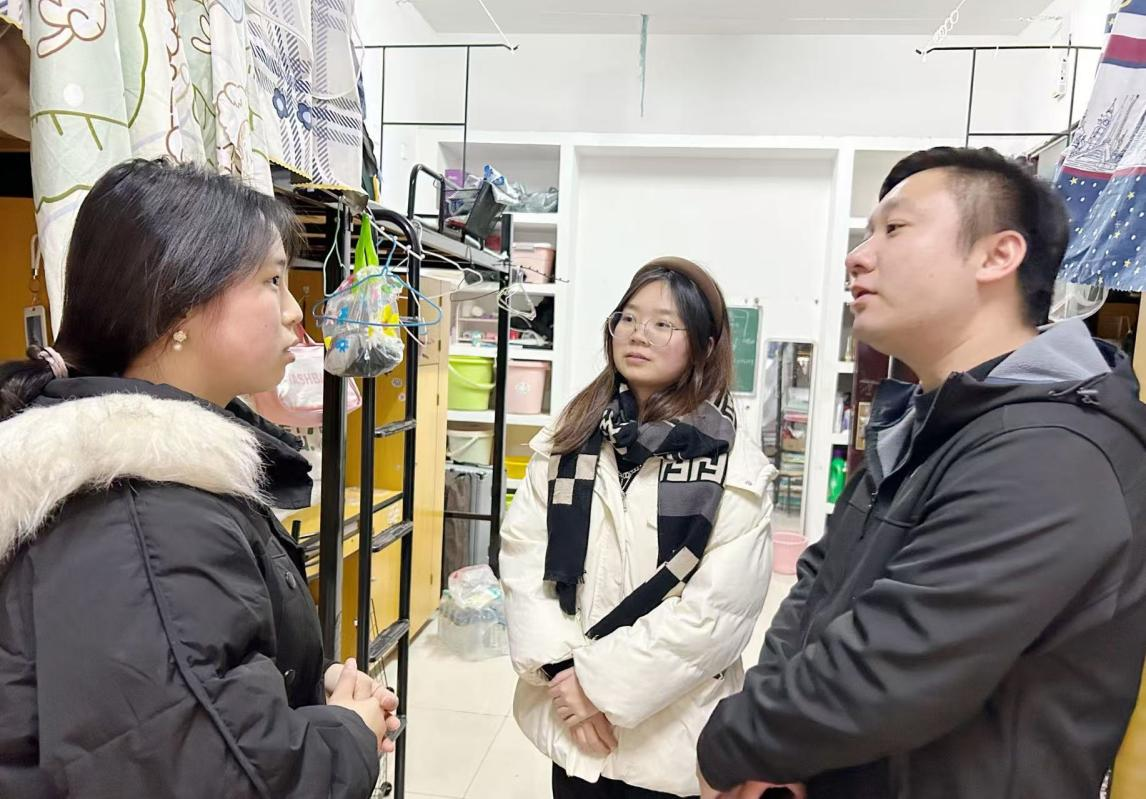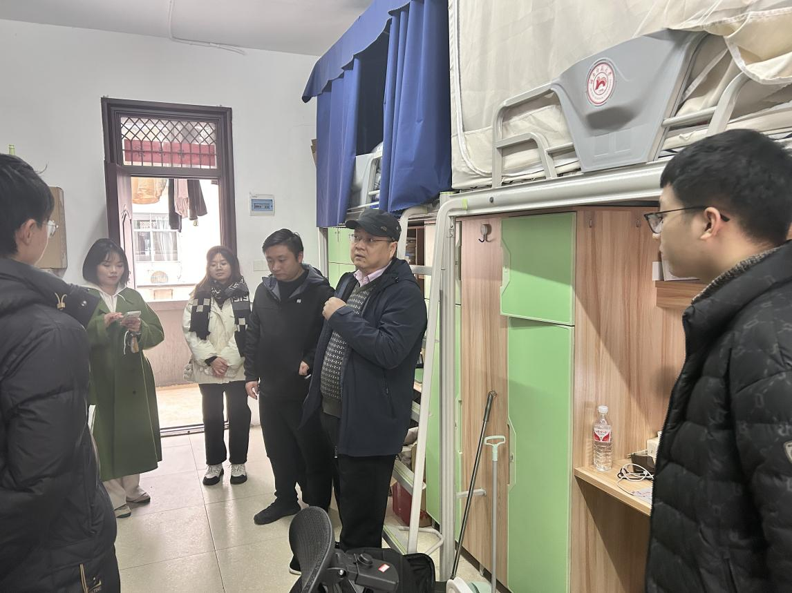 走访过程中,彭赛丰与同学们亲切交谈,详细询问了大家的假期生活、学习情况和返校后的适应情况,并耐心解答了同学们提出的问题。他叮嘱同学们要尽快调整状态,以饱满的热情投入到新学期的学习生活中去,同时也要注意个人防护,保持寝室卫生,共同营造安全、舒适的学习生活环境。
