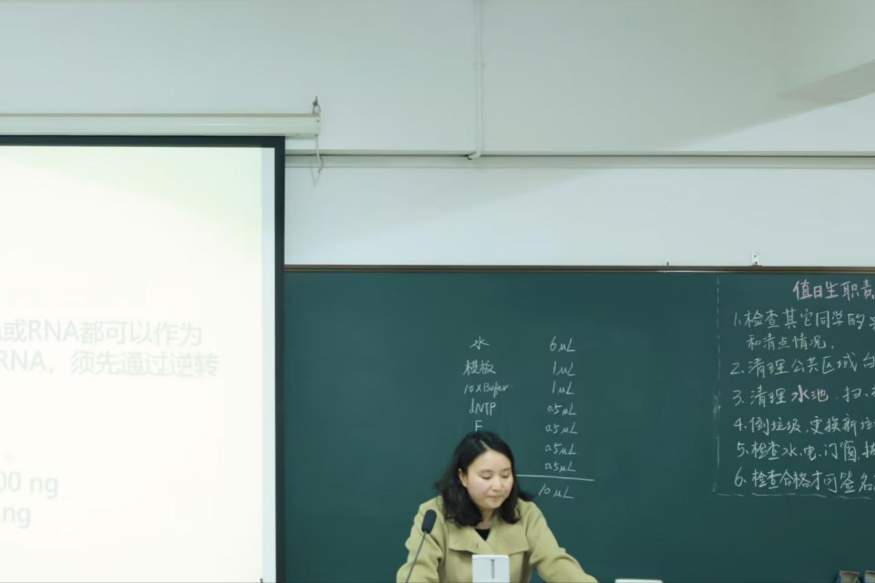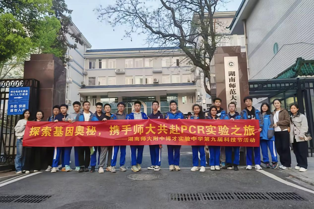 在本次活动中,高中生和本科生共同参与PCR实验。老师向全体学生介绍实验室的安全注意事项,并对实验流程进行安排说明。随后,本科生向高中生展示移液枪的使用、试剂混合及等取样步骤,并指导高中生进行实验操作,讲解取样步骤的要点。高中生在本科生的指导下完成取样操作,并将样品标记后放入 PCR 仪。在 PCR 仪运转期间,主讲人向全体学生讲解实验的目的与要求、PCR 技术在分子生物学中的重要性,以及 PCR 实验原理,并通过实验流程图展示实验的完整步骤。随后,全体学生共同完成点样、电泳及凝胶成像系统观察等后续实验操作。