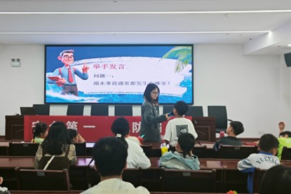 此次活动分为溺水危害警示、互动问答、救援讨论三个部分。主讲人以溺水事故数据和案例切入主题,向小朋友们展示了溺水事故对个人、家庭造成的巨大伤害,并强调防溺水的重要性。此外,主讲人以提问的方式与小朋友进行互动以巩固所学知识、纠正以往的错误认识,综合小朋友们的表现发放奖品。在救援讨论环节,主讲人向小朋友们介绍意外落水的自救方法,例如,不会游泳者落水后的漂浮技巧、疲劳过度者的自救方法和水中抽筋的应对措施等。主讲人讲述他人落水的应对措施,并强调未成年人不得下水救援和拉手救援。随后,志愿者们为小朋友们分发安全承诺书和安全倡议书,组织小朋友们进行签署。小朋友们表示,通过志愿者的视频和讲解,对溺水自救及救援有更深刻的认识,提高自我保护能力。