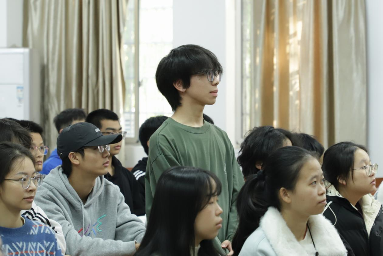 主讲人结合自身实践经历,以生动案例拆解“万物含生”工作室的运作方法,从分工合作、优秀成绩和未来展望三个方面展开讲解。同学们从讲述中了解到工作室各组别的分工与配合:微推组推出了“湖师标本馆”系列,两度获评十佳网络文化产品;活动组以趣味形式举办系列活动,传播生物学知识;网宣组构建了网络宣传平台;视频组通过科普短视频提供直观的植物认知方法。互动答疑环节中,同学们围绕工作室招新标准、活动开展频率、实践能力培养等问题进行提问,主讲人结合自身经验逐一解答,表示工作室的发展理念与实践路径始终与实际相符合,与创新相结合。