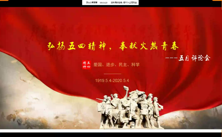 (通讯员 刘嘉欣)5月17日下午,生命科学学院、旅游学院与公共管理学院联合举办了1+1评论会之“弘扬五四精神,奉献火热青春”。此次活动采用线上直播的方式,由公管院曾凡阳、尹鑫主持。