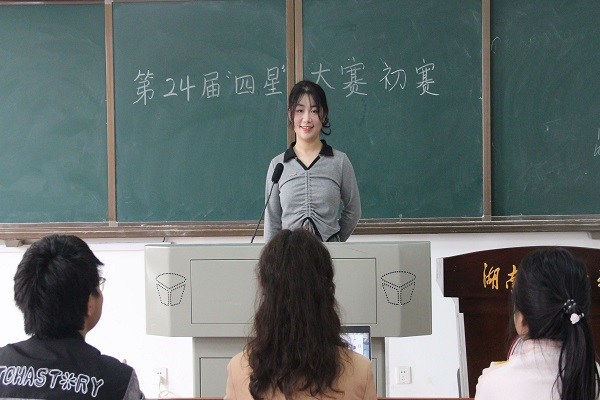 (通讯员 胡琳敏 邱靖雯)为学习宣传贯彻习近平新时代中国特色社会主义思想,丰富学生精神文化生活,湖南师范大学决定举办第24届“四星”大赛。生命科学学院积极响应学校号召,于3月9日中午,生科院学生会文化体育部于3号楼B308教室举办第24届“四星”大赛初赛。院学生会执行主席吕蕙君、主席兼办公室负责人胡聂文、主席兼文体部负责人邓孝阳以及文体部第二负责人聂嘉萍担任此次比赛评委。