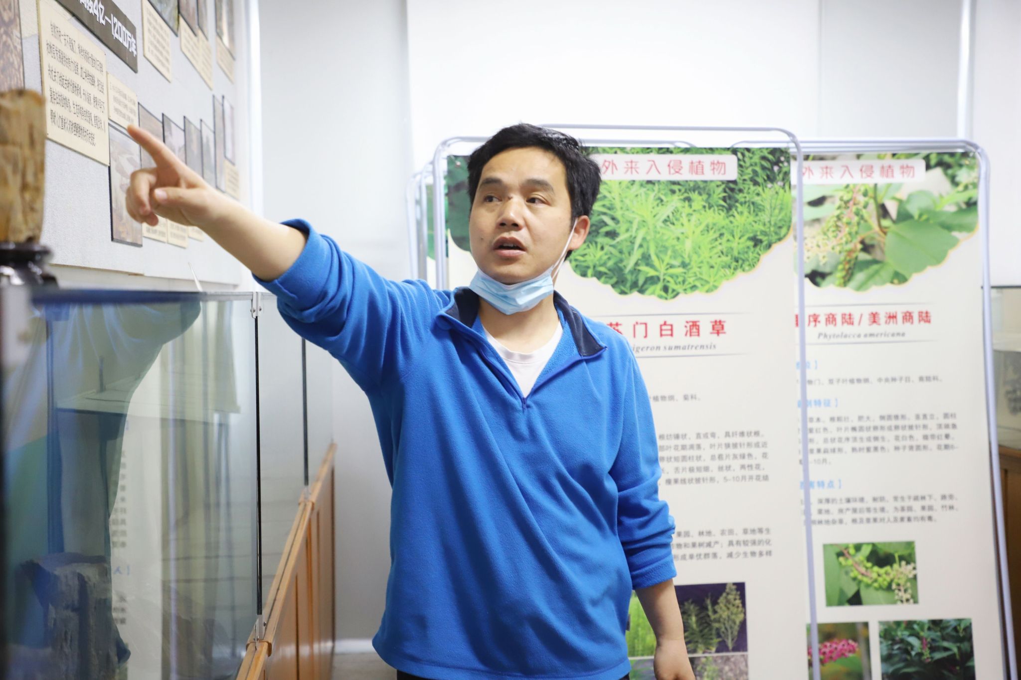 旷仁平为志愿者们依次讲解了藻类、苔藓、蕨类、裸子及被子植物等相关科普内容。他说明此次开放参观者主要为青少年,可结合一些具体的现象和故事让讲解更生动。他提醒志愿者植物标本馆展柜坚硬且有棱角,科普时应注意注意维护秩序和安全,防止小朋友磕碰摔倒。