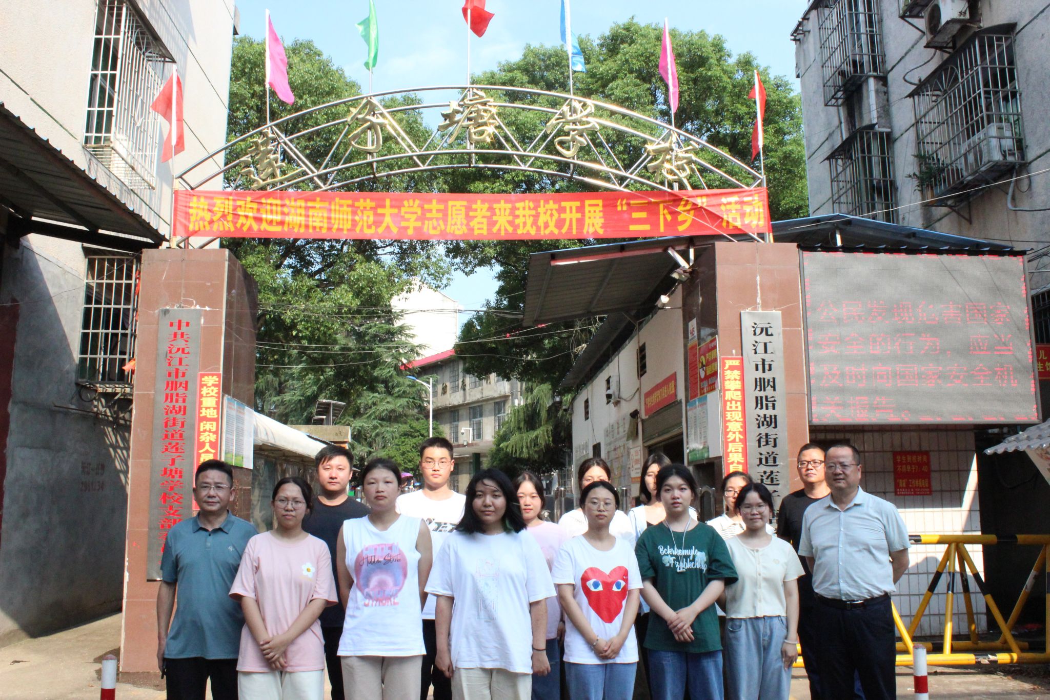 (通讯员 黄辰希 李宇轩)7月11日,湖南师范大学生命科学学院党委副书记彭赛丰、学工办主任兼2022级辅导员周冲抵达湖南省益阳市沅江市莲子塘小学慰问生科院团委暑期社会调研团。