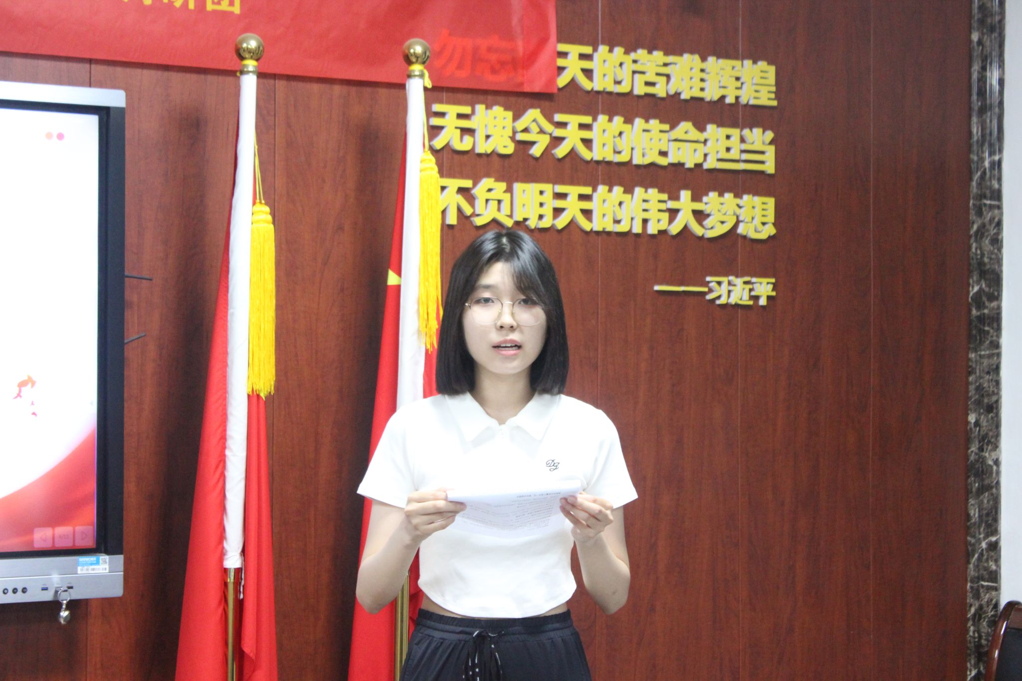 张晰然围绕学习党史的必要性,强调此次活动的意义与目的,并鼓励同学们分享党的百年光荣历史。她表示青年在党的拥护下茁壮成长,在感受党的关爱的同时,也要主动了解党的历史、党的精神、不断努力向党靠拢。张晰然希望在学党史过程中,同学们可以明智,知古今,知晓前人事迹,增长智慧,同时也可以提高思想觉悟,增长不断探索、不断研究的精神。