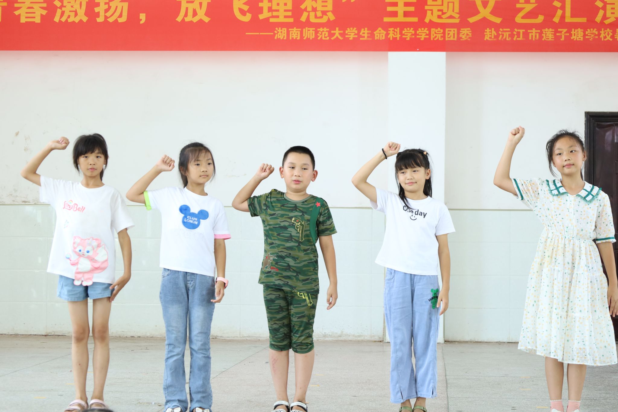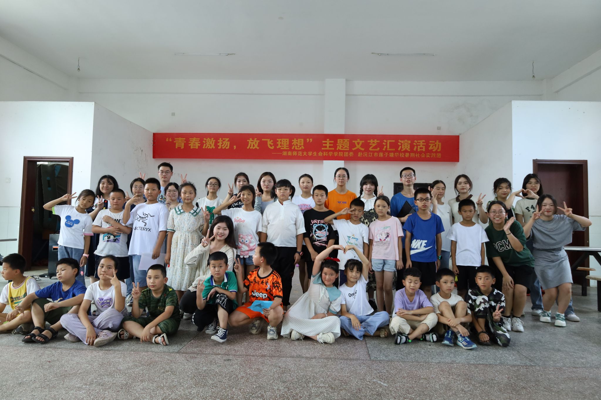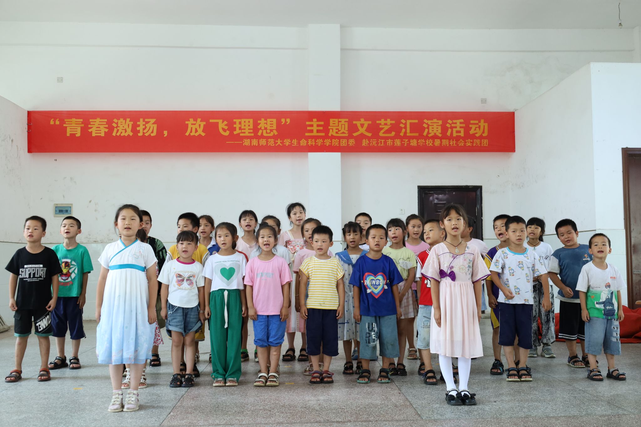 (通讯员 甘俊懿 黄辰希 李宇轩)7月19日下午,湖南师范大学生命科学学院团委赴益阳市沅江市暑期社会实践团于莲子塘学校举办“青春激扬,放飞理想”主题文艺汇演活动。此次文艺汇演由生科院实践团与莲子塘学校联合开展,莲子塘学校学生刘佳倩、徐博涵、刘佳丽、游梓轩担任主持人。