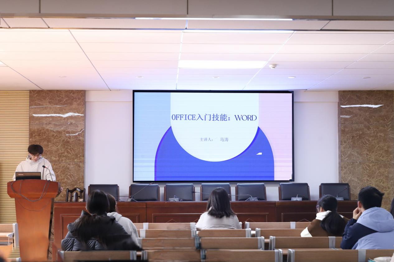 此次活动内容包括Word文档编辑与排版、Excel数据管理与分析两个部分。马涛从Word软件介绍、界面介绍和操作演示三个方面进行讲解,他向同学们介绍Word界面的排版,依次对工具栏、选项卡、功能组、文档编辑区和状况栏进行具体讲解。此外,马涛向同学们分享Word文档常用快捷键和常用功能,希望同学们能在学习生活中适当运用便捷功能。黄思怡对Excel的功能进行着重讲解,她介绍Excel的公式和函数功能,包括对大数据集的高效处理和更复杂的数学计算。她提到Excel还提供更多数据分析工具,能够帮助用户更好地理解和解释数据。
