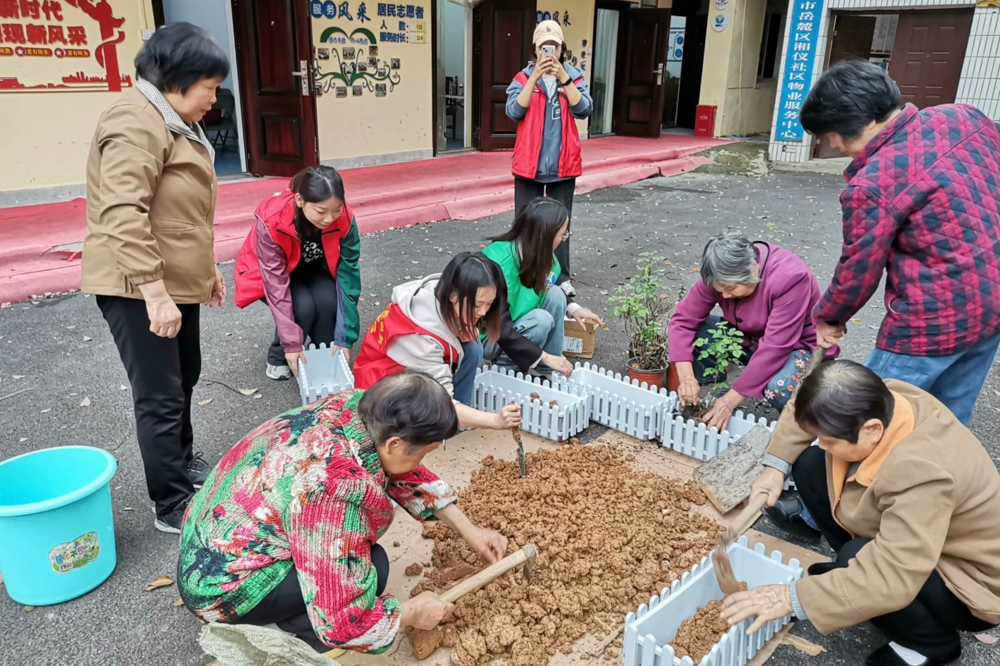 志愿者帮老人松土
