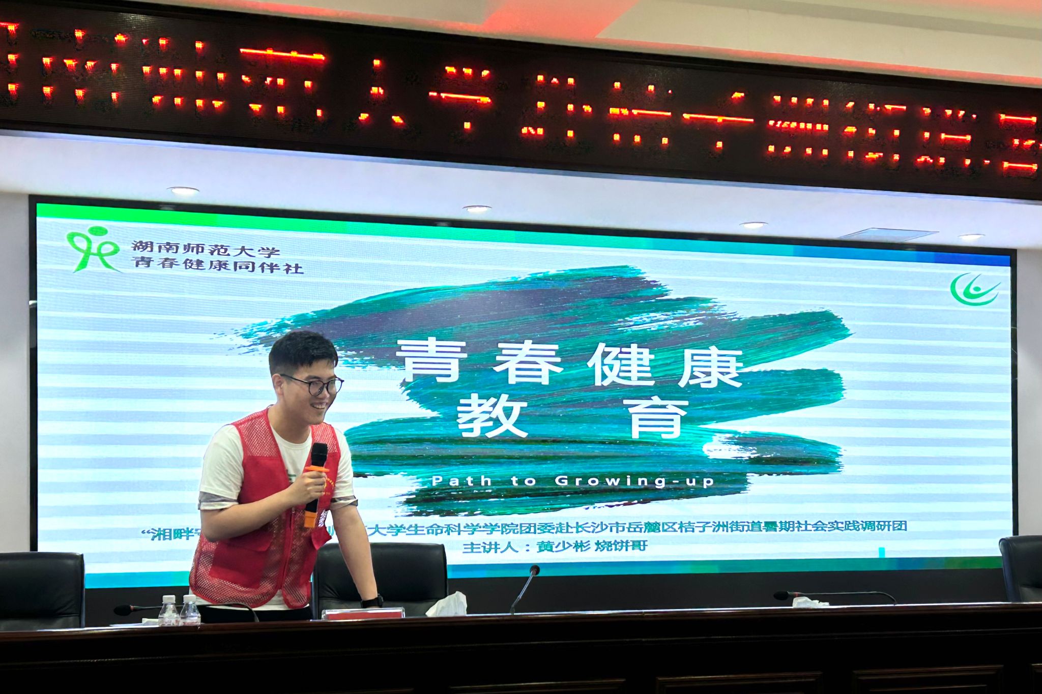 (通讯员 邓芝涵 李嘉昕)7月8日上午,生命科学学院“湘畔守望”——赴桔子洲街道调研实践队于桔子洲街道办事处举办开营仪式暨性教育课堂。桔子洲街道办事处主任唐文靓,桔子洲街道社会组织发展中心阳莉民、鲁云梦和生科院团委书记罗静伟参加此次开营仪式。实践队队长黄少彬担任性教育课堂主讲人。