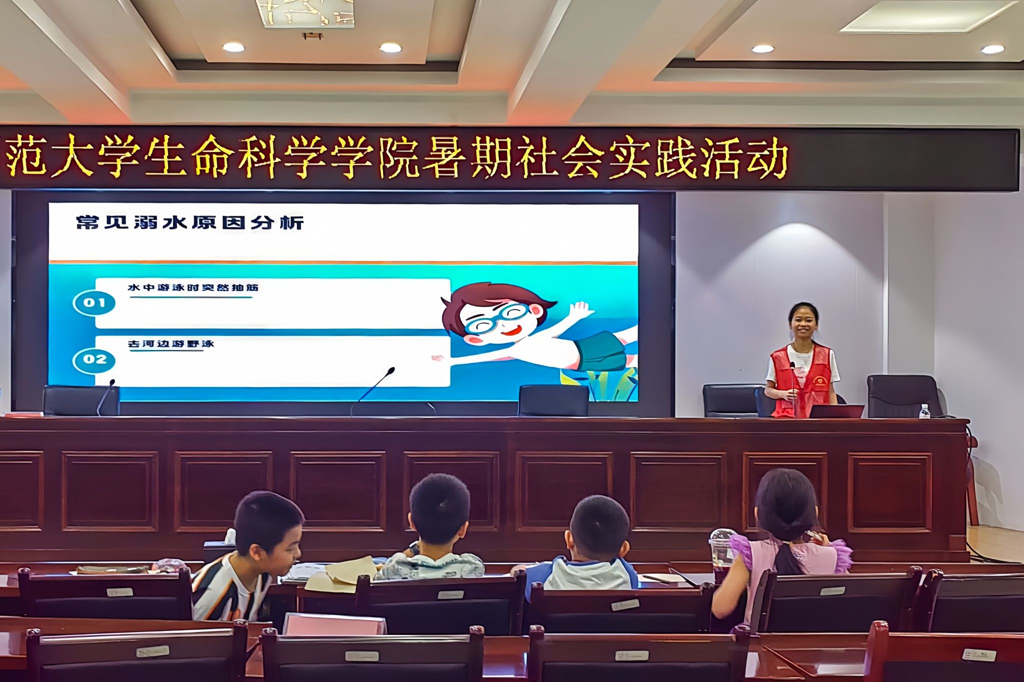 (通讯员 李嘉昕 潘田欣)7月13日,生命科学学院“湘畔守望”——赴桔子洲街道暑期实践团于桔子洲街道办事处开展“防患未然 安全‘童’行”主题教育课程。生科院2022级实践队队员潘田欣、顾鑫悦担任此次课程的主讲人。