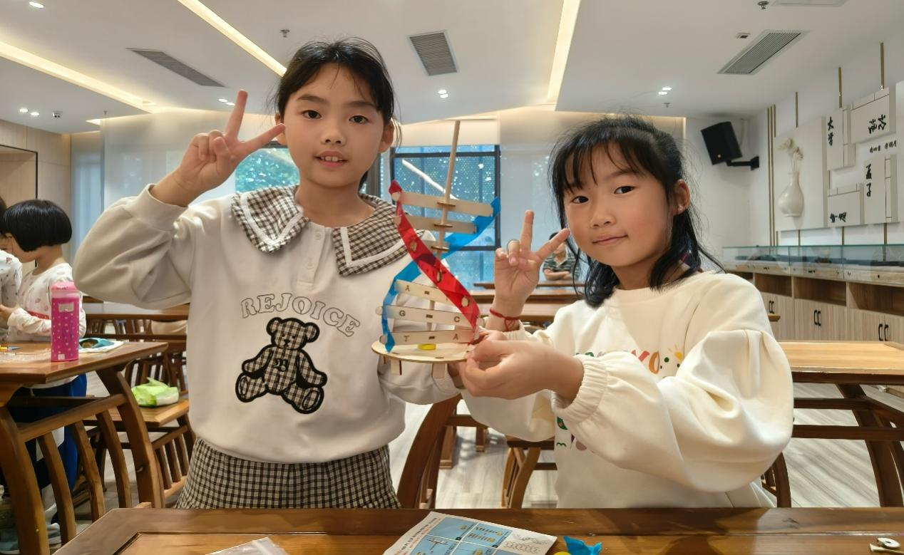 小朋友展示制作的DNA模型