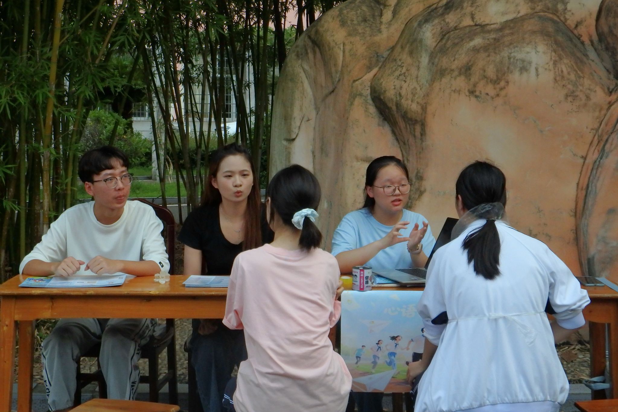 (通讯员 贾天成 何丹妮)为进一步宣传湖南师范大学对在读学生的助学政策与资助项目,7月6日下午,生科院达人学社赴株洲炎陵县社会实践团在炎陵一中校园内开设资助宣传摊位点。实践团刘阳、贾天成、谢碧瑶担任主讲人,实践团部分成员参与此次活动。