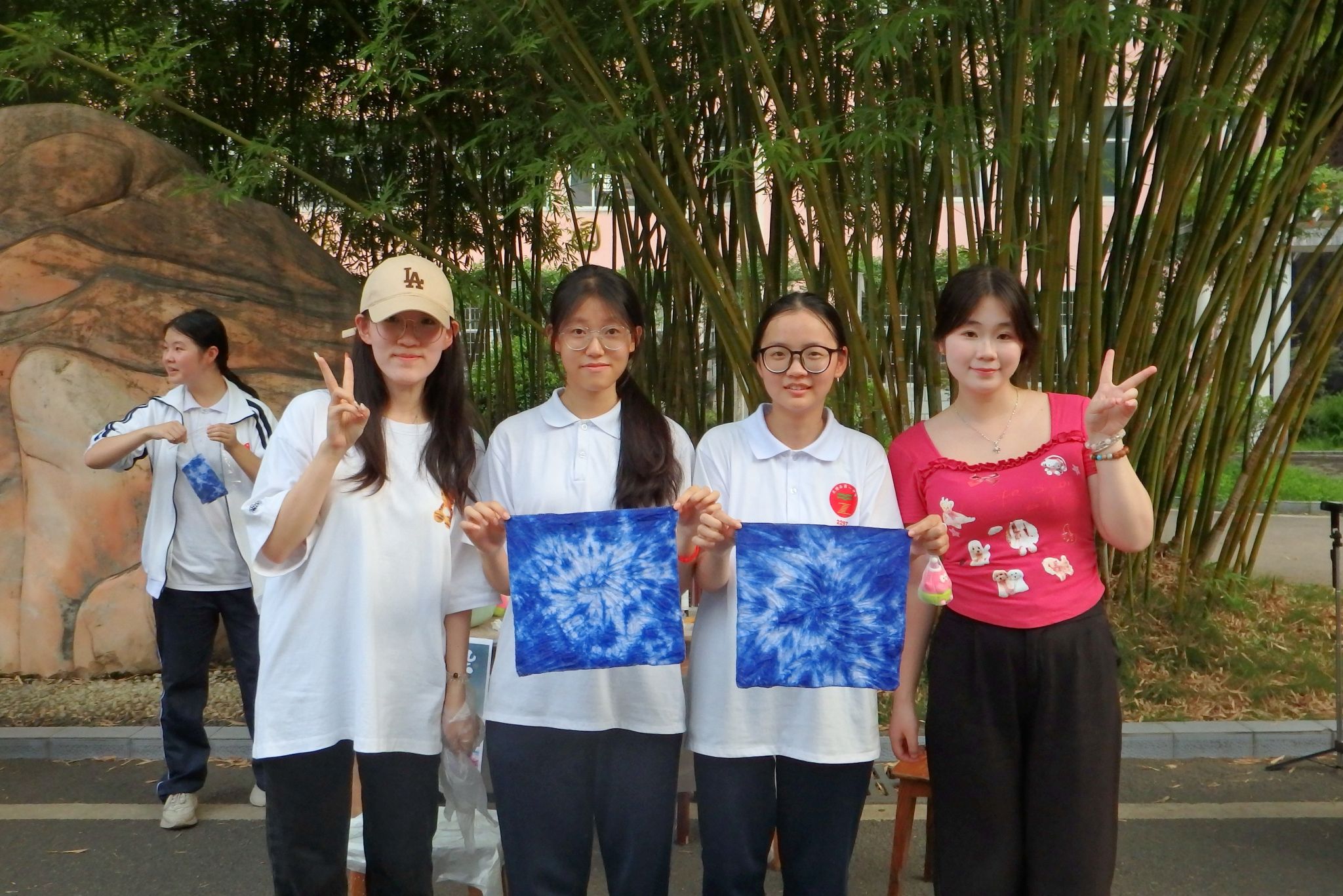 学生展示扎染成品