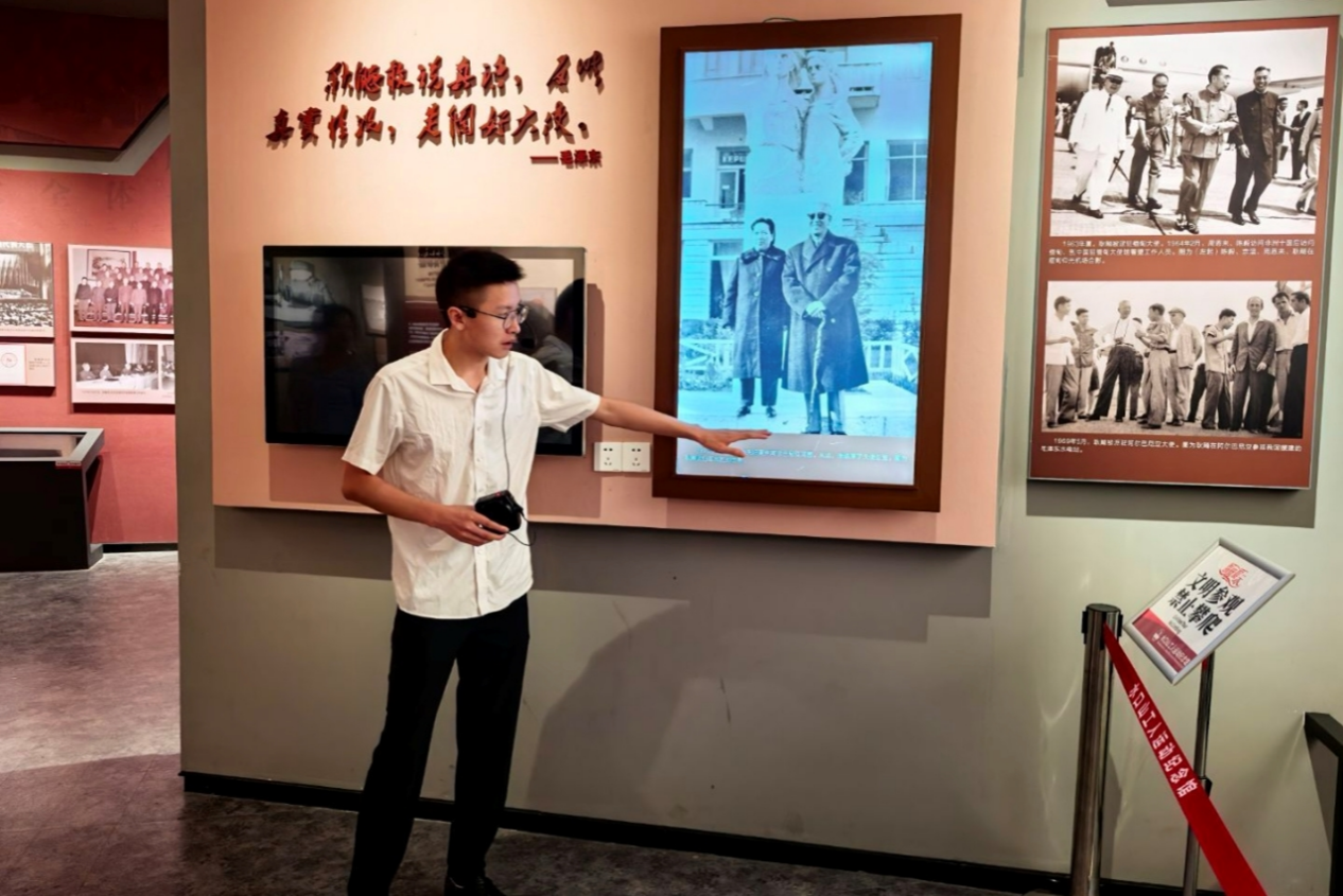 实践团成员在讲解员刘一粟的引导下,开启对水口山地区金属开采冶炼史的系统调研。成员们聆听讲解,通过实物展品、历史图片和文字资料,全面梳理水口山3000余年的矿冶发展脉络。在洋务运动时期历史展区,实践团阅读相关文献记载,了解水口山收归官办并设立矿务局的背景,以及由此开创的多项近代矿业先例。走进工业遗址展区,成员们实地观察中国首个机械提升矿井的遗址原貌,研究首座西法炼铅厂的设备复原模型。在特种材料展示区,成员们了解水口山产出的铍材料在“两弹一星”及航天工程中的应用细节,对获得全球认可的SKS商标产品相关资料进行了收集整理。面对环境治理展区的图文介绍,实践团成员询问长期过度开采导致的空气与地下水污染情况,重点记录了近年来当地关停污染企业、实施生态修复工程的具体措施,对水口山在“绿水青山就是金山银山”理念指导下实现的生态转型路径展开深入探讨。