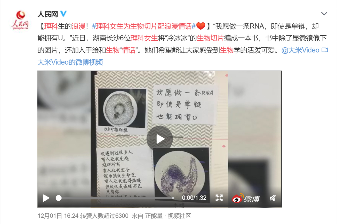 (通讯员 龙欣然)11月30日,人民网发表我校生命科学学院学子制作《生物图鉴》的视频,并称其为“理科生的浪漫”。