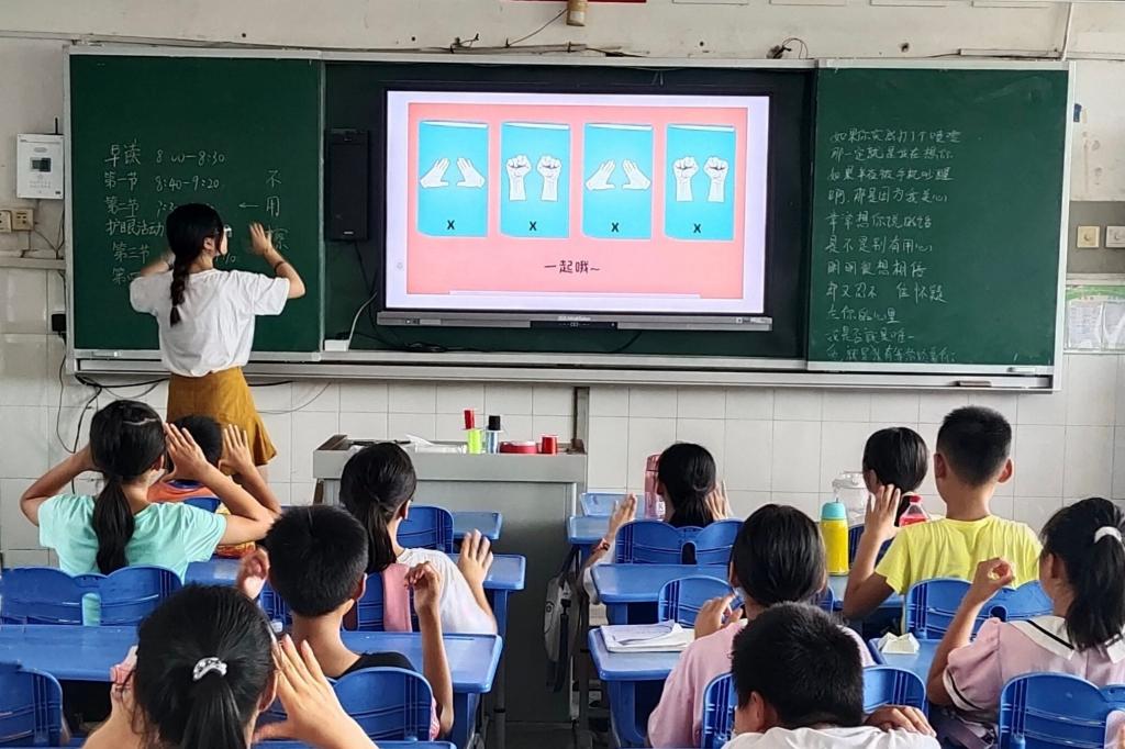 (通讯员 王乐怡 张贝贝 庾雪菲) 7月16日上午,生命科学学院创意模型社团支部赴捞刀河镇凤羽小学暑期社会实践团举办手势节奏舞活动。实践团成员王乐怡担任活动主持人。