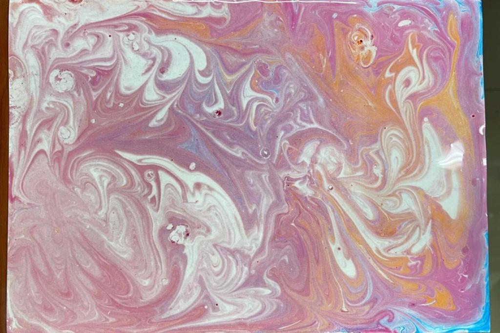 此次活动由水拓画介绍和水拓画制作两个部分组成。朱婕通过展示水拓画作品向会员讲解了水拓画的制作内容和注意事项。理事分发手工材料并带领会员进行水拓画的制作,会员按照讲解步骤完成水拓画的创作。社团收集会员作品并将以线上投票的形式评选出优秀作品。