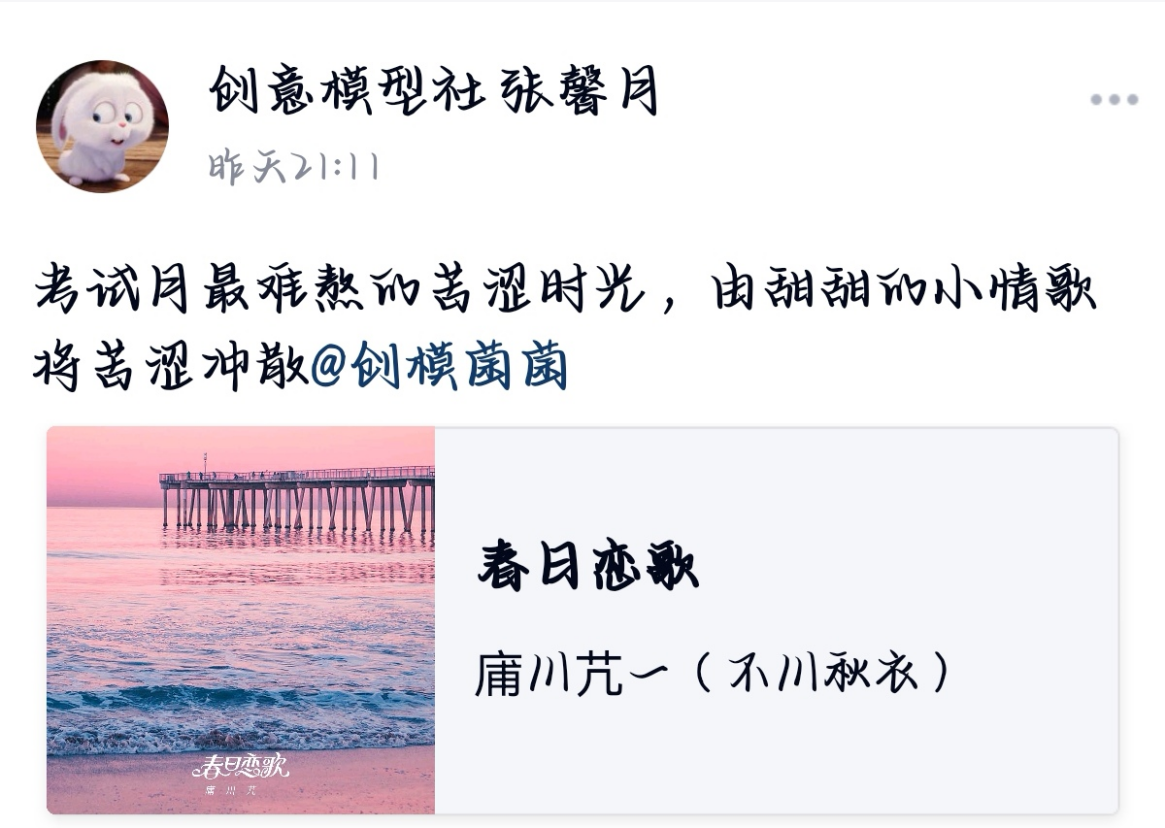 (通讯员 李可文 庾雪菲)3月13日至17日,生命科学学院创意模型社于线上举办“音乐有你,乐享人生”分享活动,生科院创模社副理事长向蓉禧担任此次活动的负责人。
