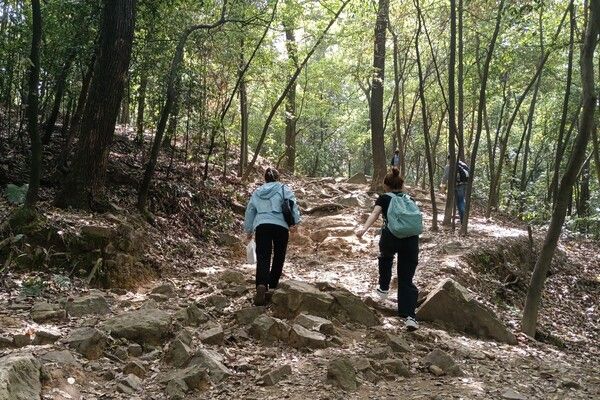 活动分为路线介绍、会员爬山以及感悟分享三部分。会员们于二里半校区忠烈祠集合。江艾雯借助地图为会员们介绍上山路线、安排会员休息地点,并提醒会员们楼梯陡峭,要注意脚下安全。爬至山顶,会员们分享各自的所见所闻所感。读书协会理事长刘妍、理事李顺风为会员们分发小礼品并组织大家进行集体合照。