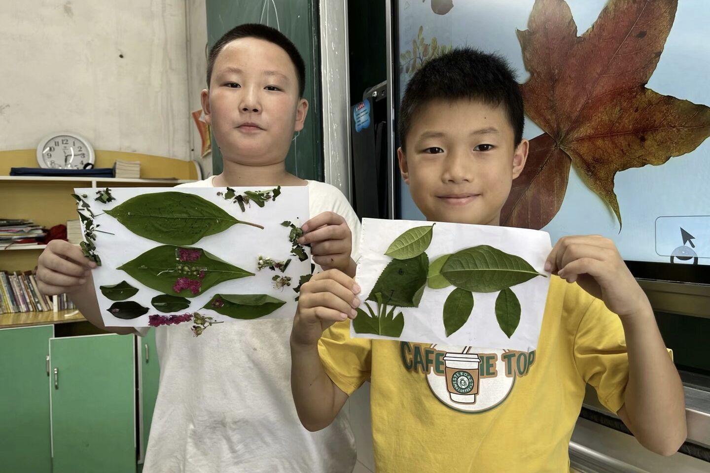 学生树叶贴画作品展示