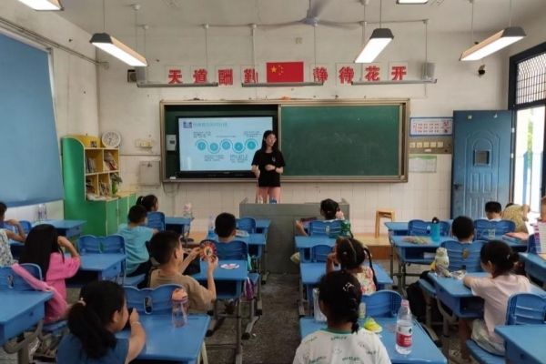 生科院创意模型社2023年赴长沙市捞刀河镇凤羽小学暑期社会实践队部分成员参与此次课程。