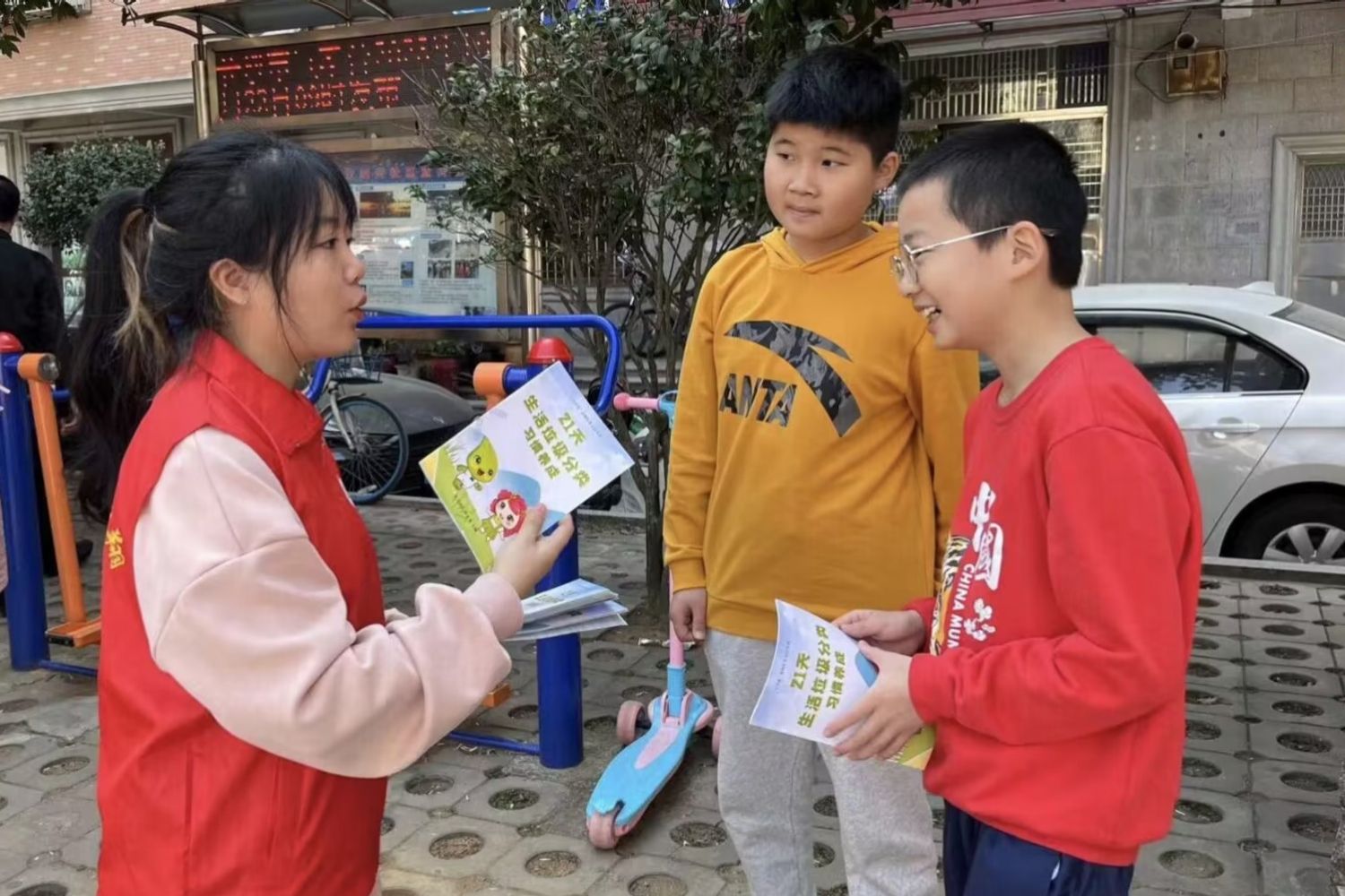 志愿者分发垃圾分类手册