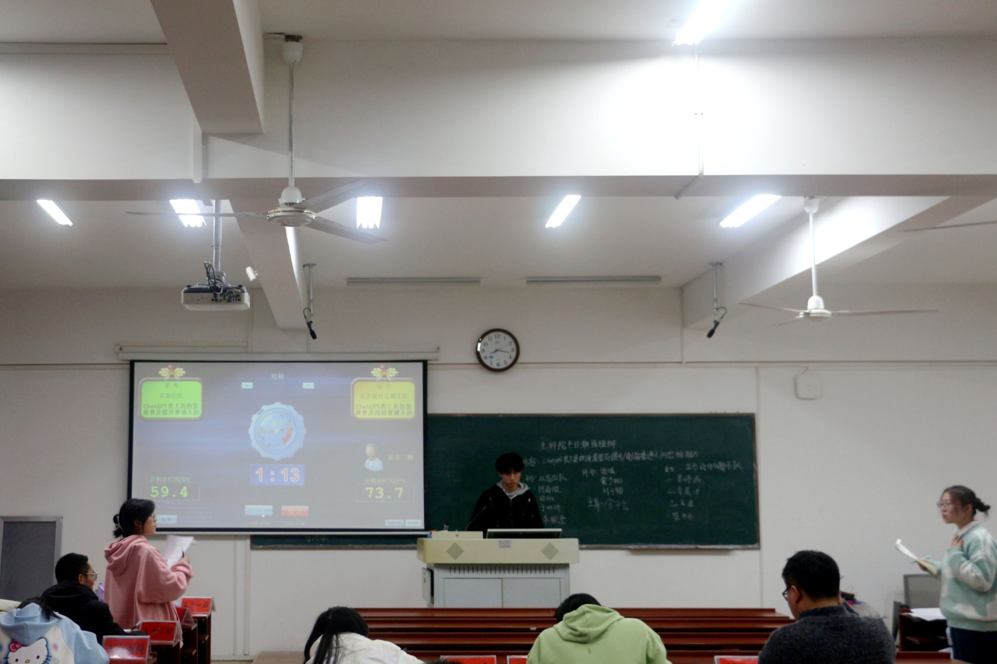 此次辩论赛围绕“ChatGPT类工具的发展普及会提升/削弱普通人的思维能力”展开。生科院辩论队2022级队员通过指导新生备赛,从辩论环节与辩论技巧两大方面指导新生熟悉辩论赛场的攻防。新生们在备赛期间查阅相关资料,与队友讨论辩题中的知识盲点,并学习辩论赛盘问、质询等环节中的辩论礼仪和辩论技巧。选手们在赛场上输出自己的观点,拆解彼此数据,攻防交锋。最终 “啊对对队”“正方说什么都不队”“从容应队”获得此次比赛胜利,2023级新生黄雯希、陈茵璇获最佳辩手称号。对于各位选手比赛中的表现,评委给予肯定与表扬。赛后,队员们针对此次比赛中出现的主战场和逻辑链进行复盘。生科院辩论队荣誉指导谈顺从话术技巧、临阵心态、职责划分等几个方面进行教学,结合赛场实际与其亲身实践,讲解不同局势下的应对策略,丰富了2023级新生的理论知识与实践经验。