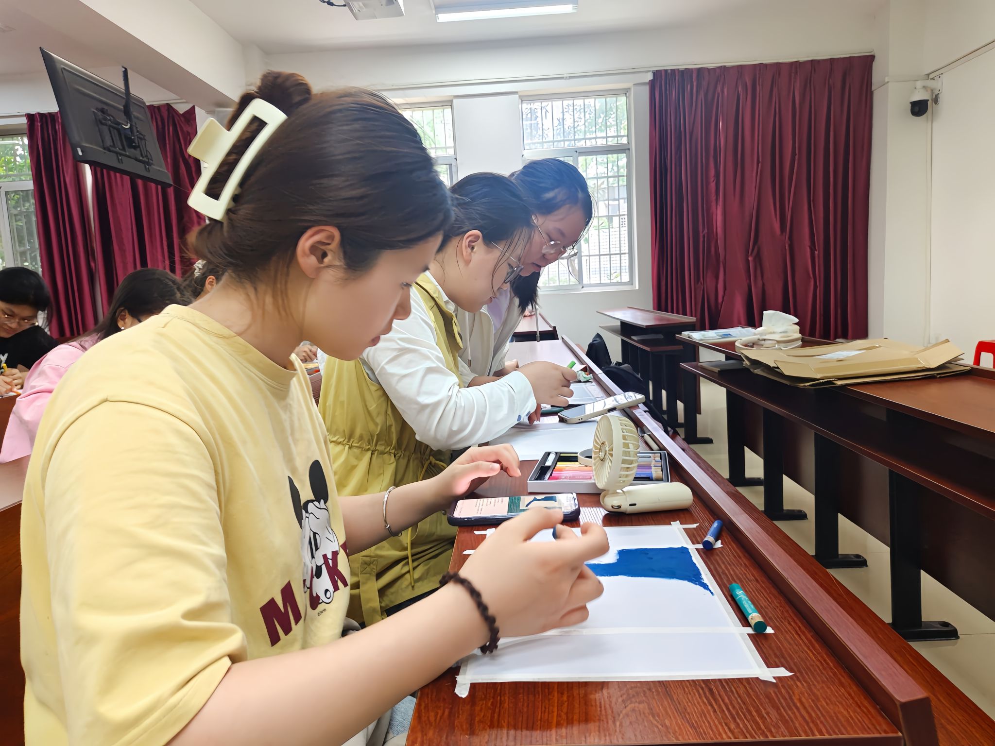 同学们绘制油画