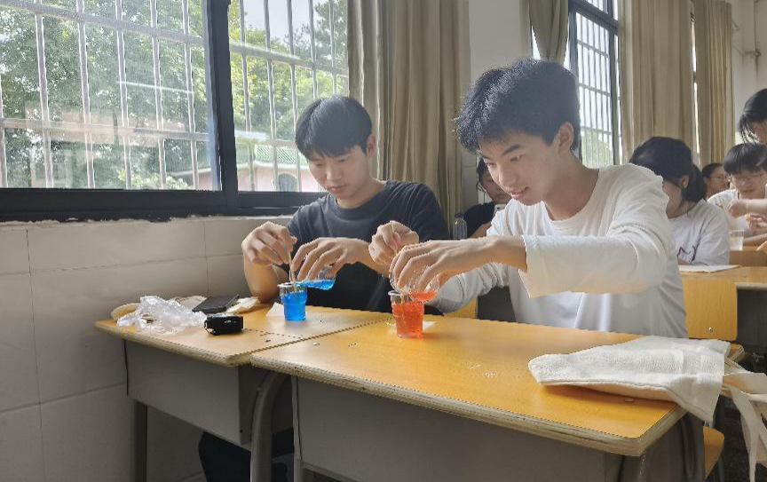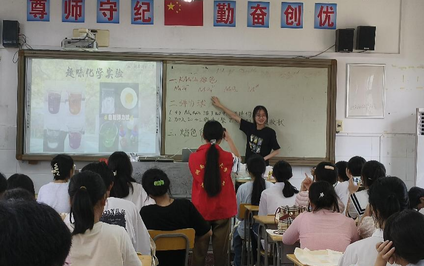 (通讯员 王林枫 戴永烨)为了提高学生对科学知识学习以及科学探索的兴趣,7月13日下午,生命科学学院达人学社赴炎陵暑期实践团于炎陵县第一中学举办趣味化学实验活动。达人学社赴炎陵暑期实践团部分成员,炎陵县第一中学部分学生参与此次活动。