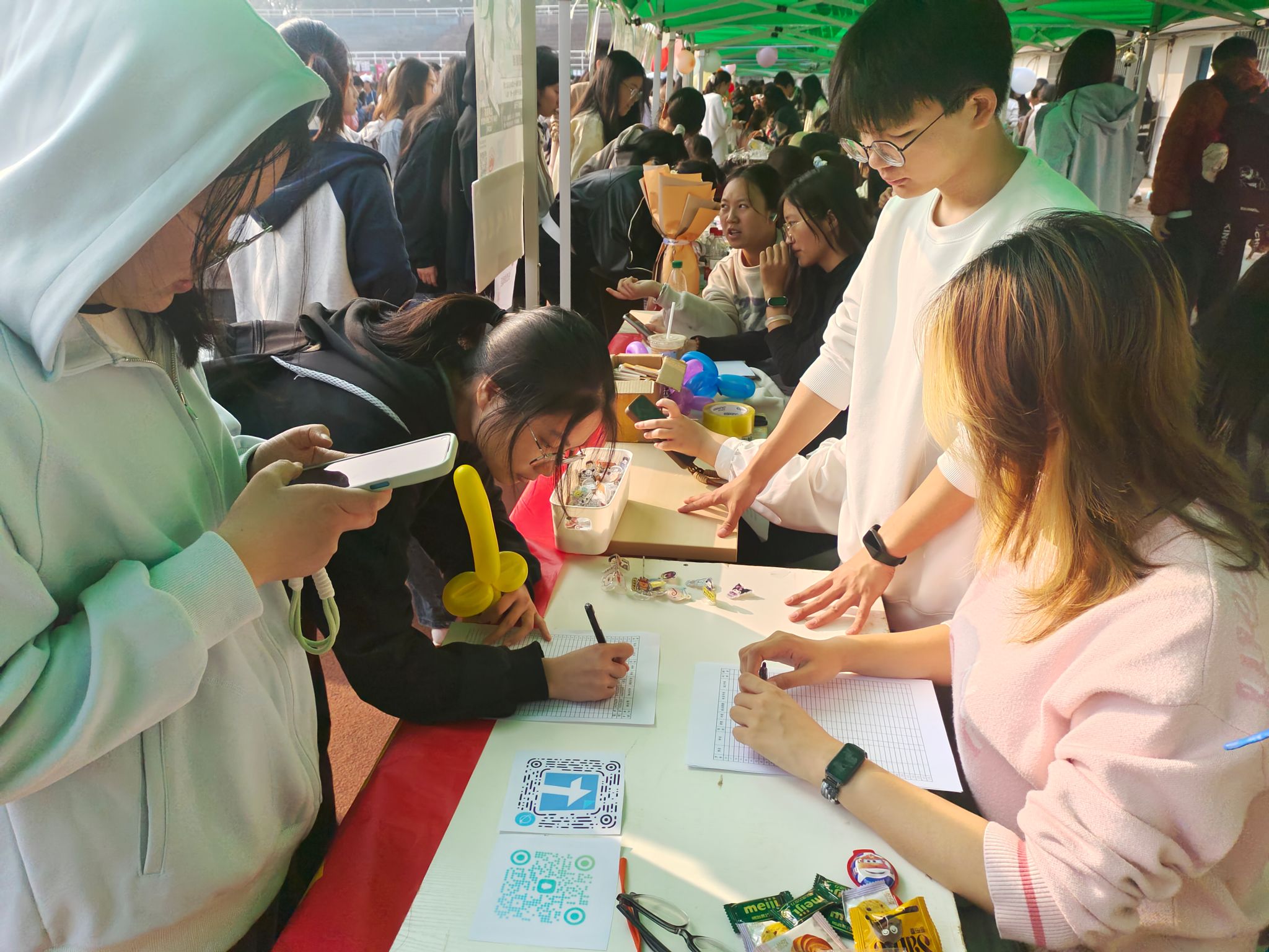 (通讯员 李佳欣 郑文妍)11月3日,生命科学学院(以下简称“生科院”)的达人学社、暖意生物学社、三叶草园艺社、小微公益社及科幻动漫协会五大社团,齐聚湖南师范大学北院田径场,参加湖南师范大学第25届百团大战社团招新活动。院团委书记兼暖意生物学社指导老师罗静伟和院学社管指导老师吴晴亲临现场,给予指导和支持。生科院部分学生参加此次活动。