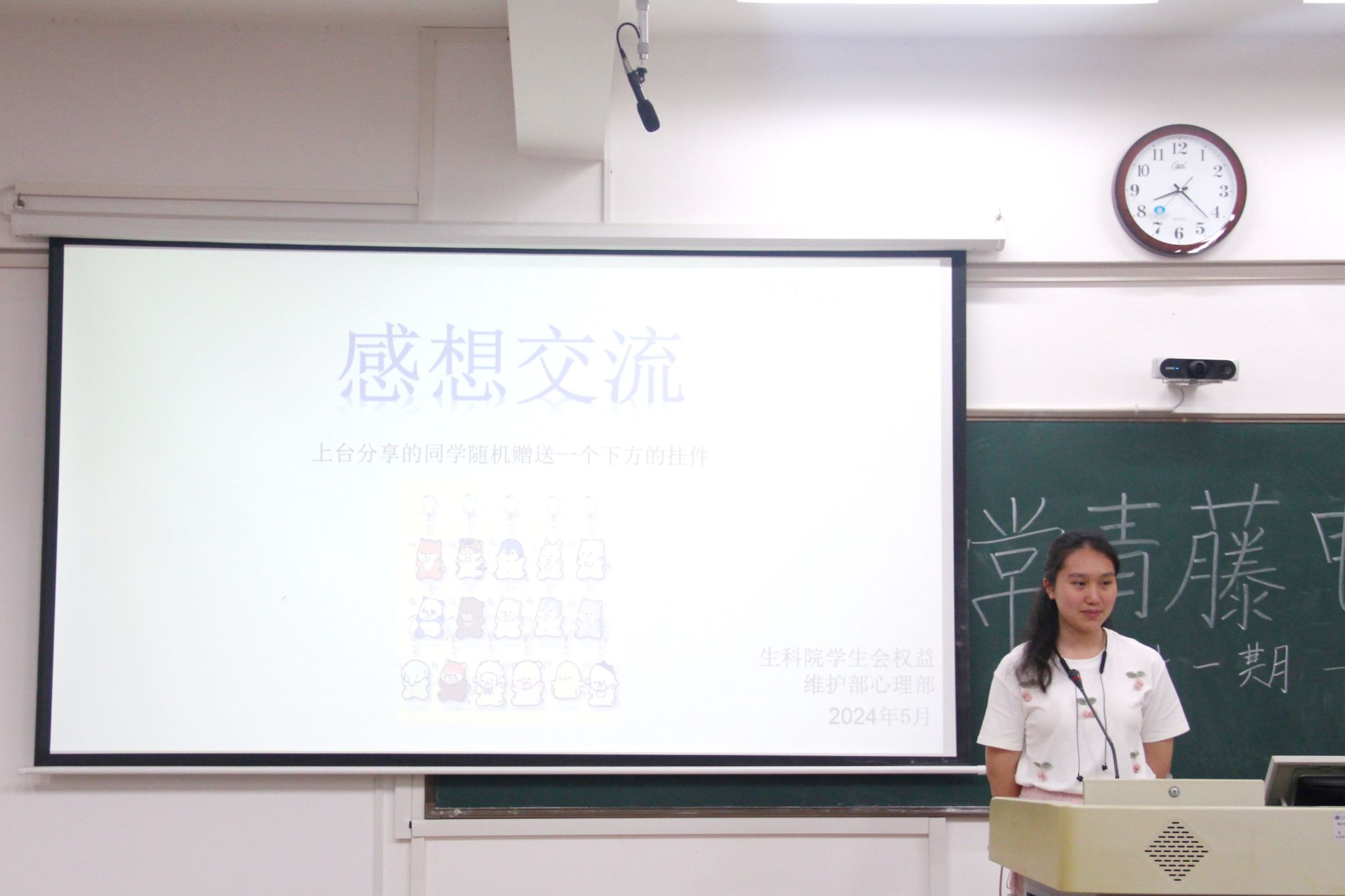 (通讯员 赵梦冉 章超凡)5月19日晚,生命科学学院学生会于生科院三号楼B107教室举办“常青藤”影院心理电影沙龙第十一期观影活动。生科院2021级、2022级、2023级部分学生参与此次活动。生科院学生会权益部干事担任此次活动主持人。