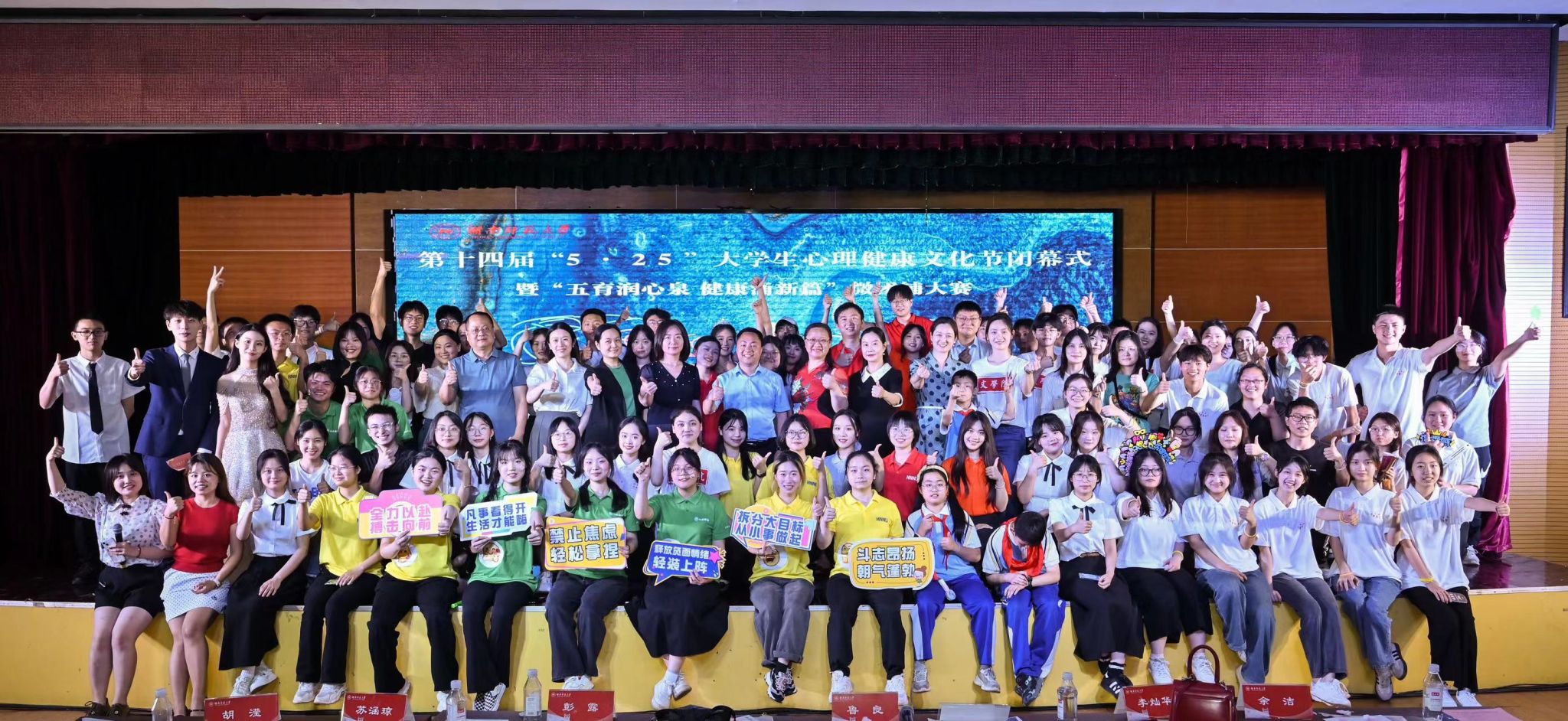 (通讯员 谢碧瑶 章超凡 刘雅菲)5月27日晚,湖南师范大学第十四届“5.25大学生心理健康文化节”闭幕式暨“五育润心泉,健康涌新篇”微团辅大赛于江边活动中心举行。经过激烈的角逐,生命科学学院的微团辅团队凭借出色的表现荣获二等奖。生科院党委副书记彭赛丰携学工办周冲、罗静伟、吴晴、刘迎彬带队参与。