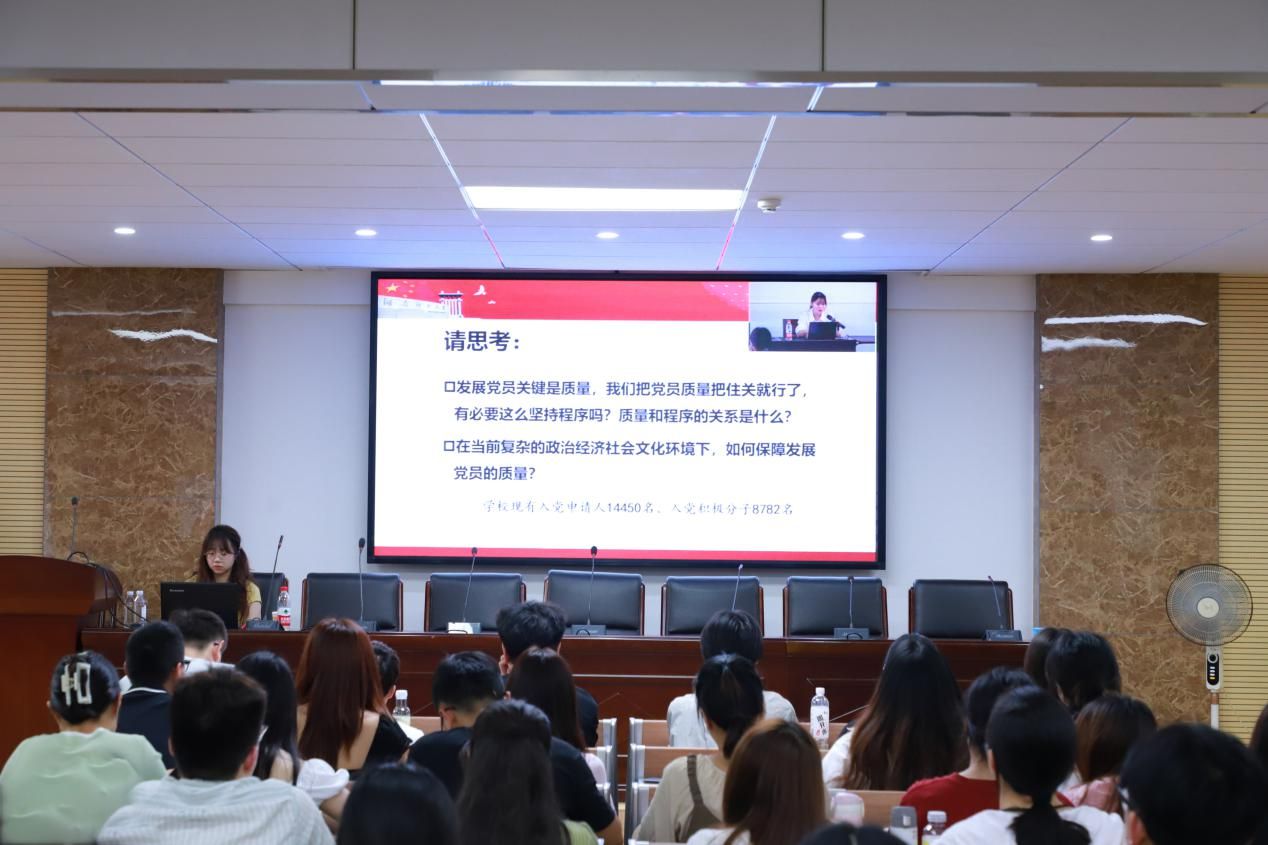 党课培训环节,陈一诚进行专题六“厘清入党条件,强化党员义务权利意识”的授课,他从申请入党的基本条件、党员的基本要求、党员的义务和权利等方面内容为学员们进行讲解。随后,文敏进行专题十二“把握入党流程,严格遵守发展党员流程”的授课,仔细讲述了发展党员的程序和手续,如提交入党申请书的具体要求以及入党积极分子的确定和培养教育等,帮助大家理清各阶段的任务及注意事项,明确入党积极分子的责任和义务。