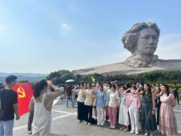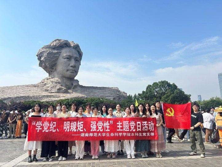 (通讯员 周洲 刘星雨)为进一步抓实做细毕业生党员教育管理工作,把好党员“出口关”,使全体毕业生党员时刻牢记党员身份,坚定理想信念,强化责任担当,在未来的学习生活中和工作岗位上彰显大学生党员的风采,发挥党员模范带头作用。5月16日下午,为教育引导广大毕业生党员坚定理想信念、牢记党员身份、永葆党员本色,中共湖南师范大学生命科学学院本科生党支部开展了“学党纪、明规矩、强党性”主题党日活动。本科生第一党支部书记吴晴、第三党支部书记罗静伟带队前往橘子洲头重温革命历史,缅怀革命先烈。