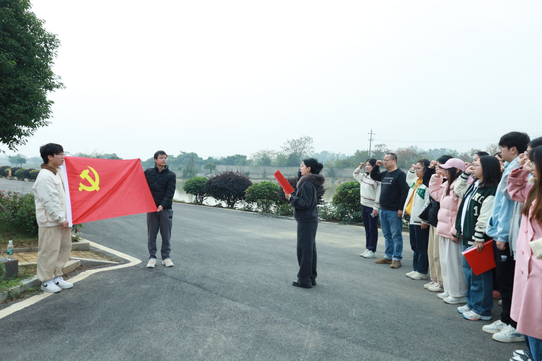 活动第二项:入党宣誓。由刘慧祺同志担任领誓人,引领全体同志于党旗之前庄严肃穆地宣读入党誓言。宣誓仪式现场,同志们高高举起右手,紧握成拳,以铿锵有力、掷地有声的语调郑重宣誓。每一句誓言都承载着他们内心深处对党的无限忠诚,以及矢志为共产主义事业拼搏奋进、奉献终身的坚定决心,彰显了共产党员的崇高信仰与神圣使命。