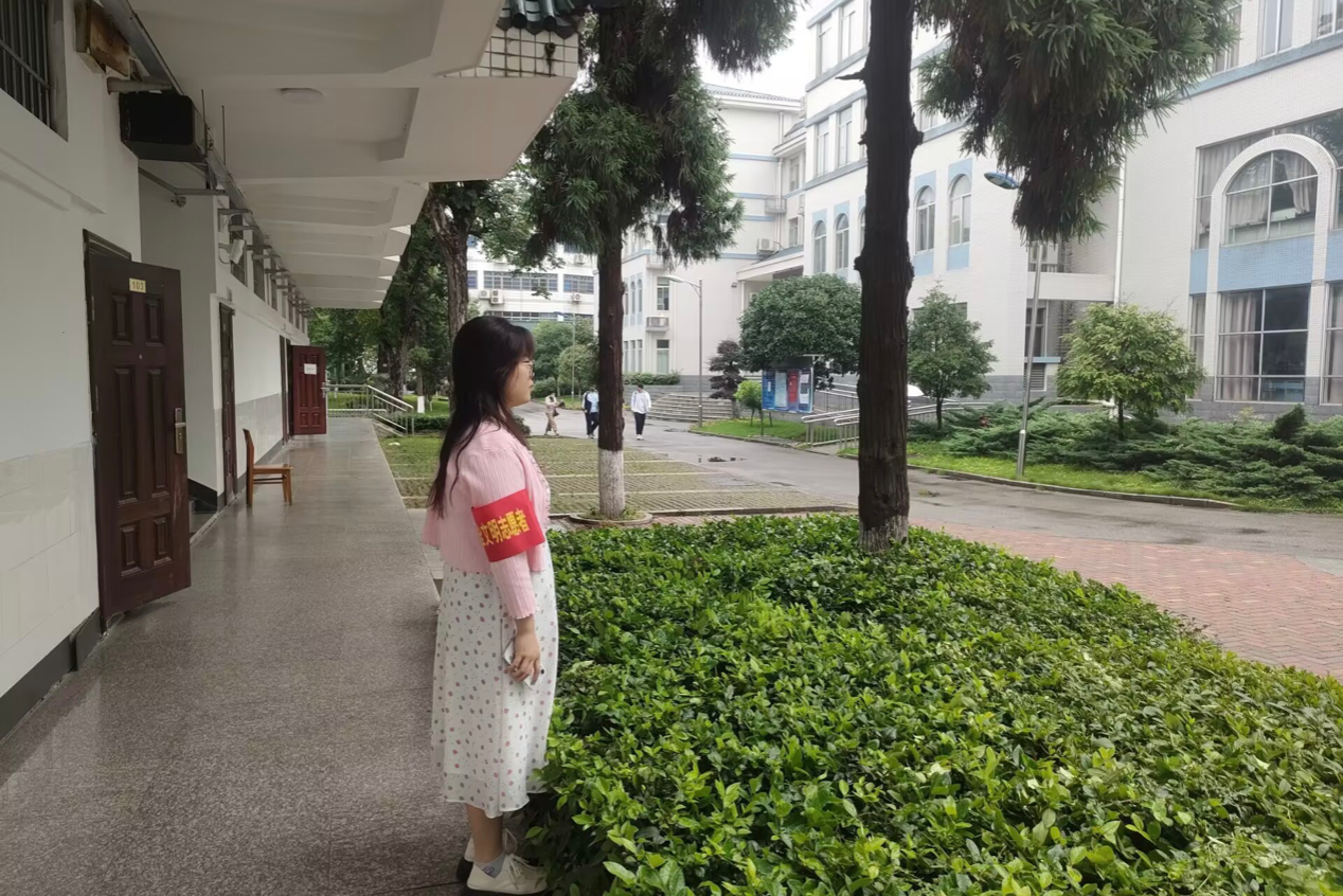 志愿者在学院内执勤