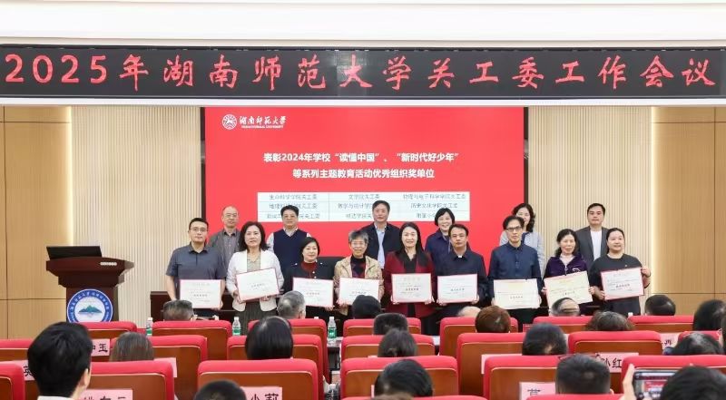 (通讯员 王春艳 罗静伟)3月25日上午,湖南师范大学召开2025年全校关心下一代工作委员会工作会议。会议全面总结年度工作成效,表彰先进集体与个人。生命科学学院关工委及多名教师凭借扎实的工作作风和显著的育人成果,荣膺“五好基层关工委”“读懂中国优秀组织奖”等多项集体与个人荣誉,充分彰显了校关工委统筹引领下基层工作的蓬勃活力。