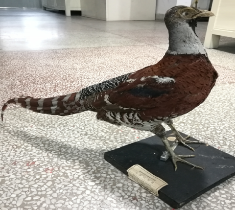 湖南师范大学动植物标本馆有白颈长尾雉1件,1998年3月,采自益阳安化。记得当时安化森林公安局没收的珍稀鸟类,请叶老师鉴定后,叶老师请求留给我们做标本留做教学用,他们给予了支持。这是我第一次跟叶贻云老师学习做的第一件标本,制作的地点在3号科研楼的4楼办公室,因刚学做总担心自己做不好,叶老师总是鼓励我,手把手的教,花了几天时间才完成的,尽管有许多不如意的地方,如:眼睛不丰满,脚好像有点短,但能为标本馆增加一件标本非常高兴,一直保存到现在,毕竟我们仅一件这样的标本,此标本已有23余年,现在该物种2021年已由国家二级保护动物升为一级了,更加珍贵了。