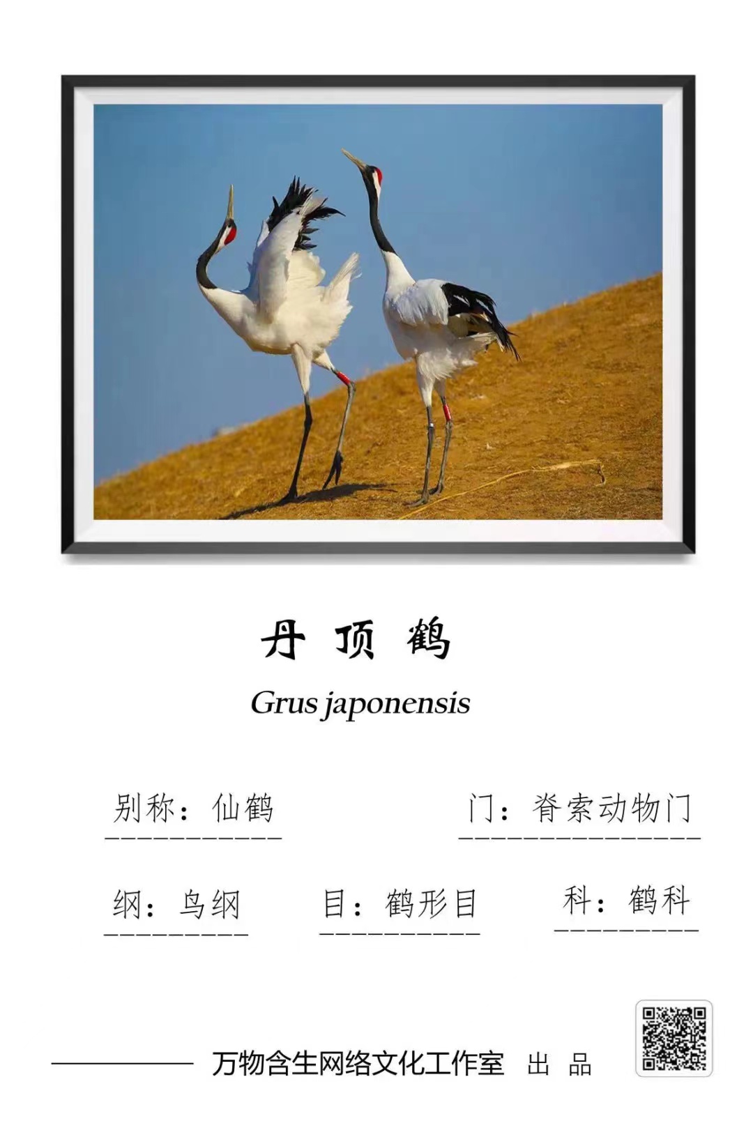 丹顶鹤(Grus japonensis)为鹤形目鹤科鹤属的鸟类,又称为仙鹤,是国家一级重点保护野生动物,被IUCN列为濒危(EN)物种。