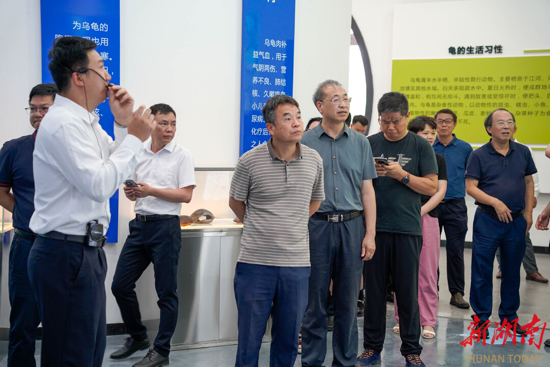 中华鳖、珍珠鳖、日本鳖,还有鳄鱼龟、巴西龟、地图龟……颜色、大小不一的各种鳖和龟在透明的小池中慢悠悠地伸展着四肢,向为他们而来的参观者表示欢迎。揭牌仪式结束后,前来参加活动的嘉宾共同参观了鳖龟种质资源保护和利用中心。馆内以鳖龟为主角,设置了“鳖文化”“历史中的甲鱼”“汉寿甲鱼发展史”“甲鱼现代化生态养殖模式”“鳖龟的价值”等五大版块,以生动的活体展示和有趣的文字故事相结合,将鳖龟文化娓娓道来。